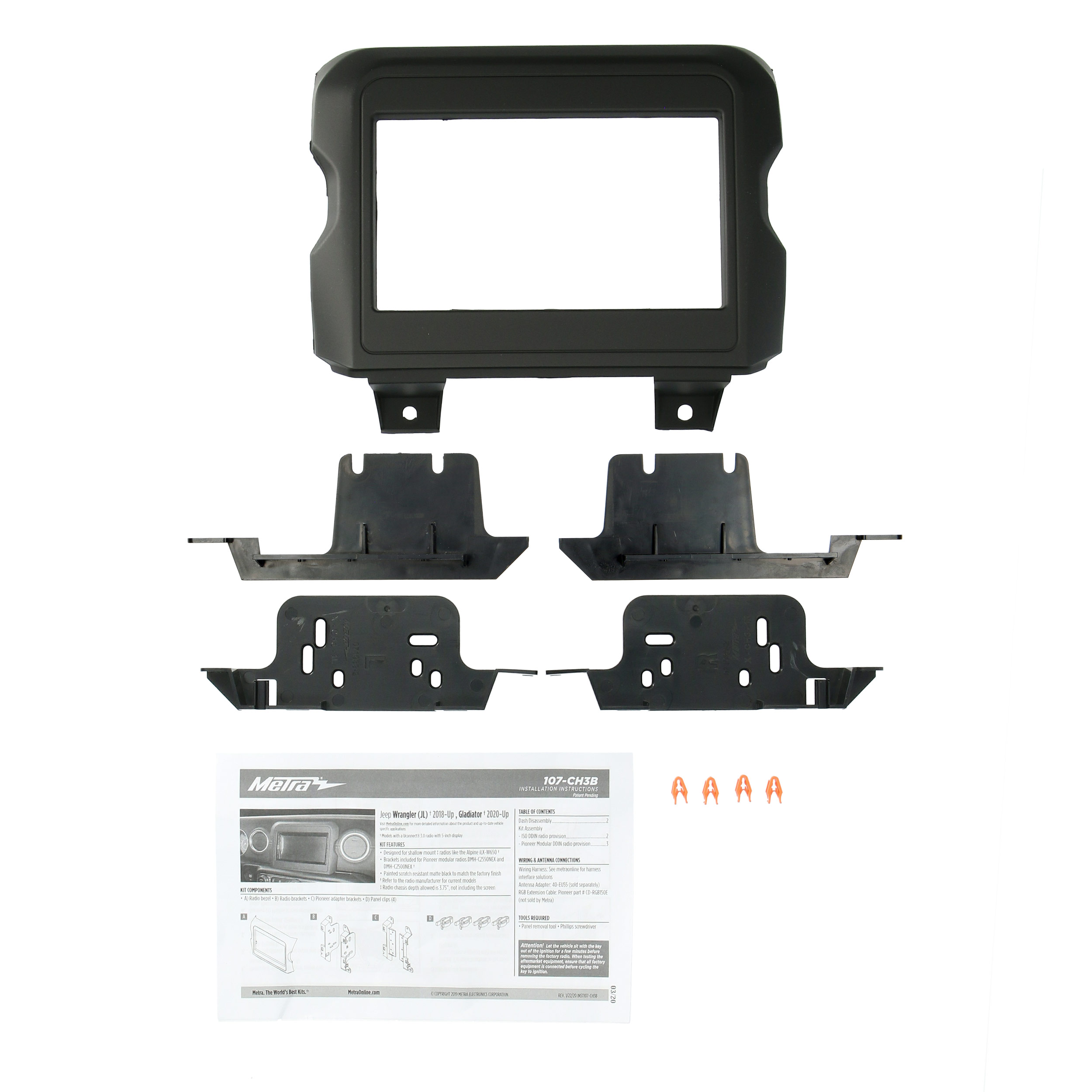 Brackets included for Pioneer modular radios DMH-C2550NEX and DMH-C2500NEX (refer to radio manufacturer for current models)