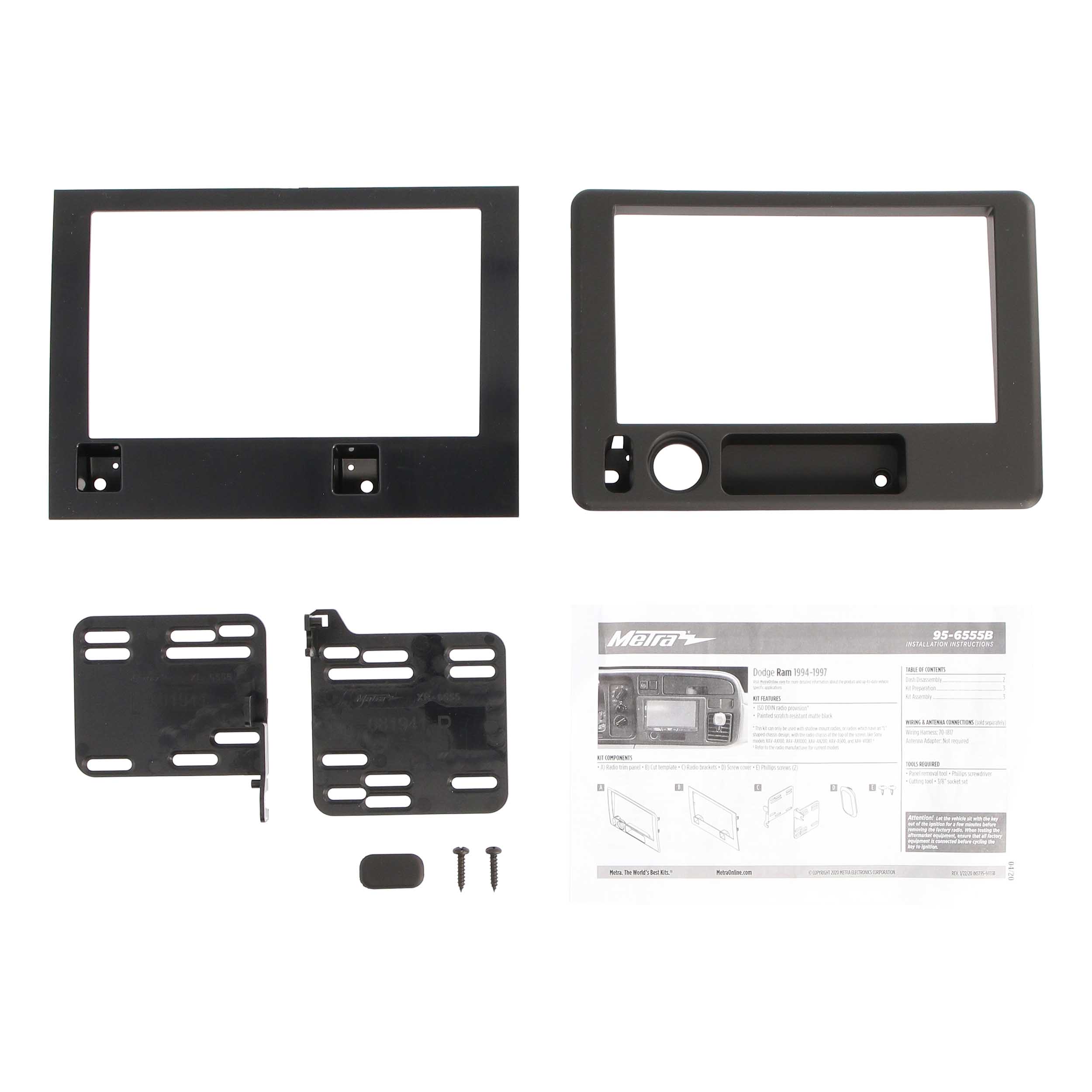 This stereo installation kit is engineered to help you install an aftermarket shallow-mount or an "L" shaped chassis, 4" tall (Double-DIN) radio into the original vehicle dashboard. This dash kit helps make radio replacement easier and is painted scratch-resistant matte black to match the original look and feel of the vehicle's dashboard. Modifications to the factory dashboard trim panel and sub-dash are required for this installation. A cutting template and instructions are included. Installing an aftermarket radio can upgrade the sound quality and provide additional features the original factory radio couldn't offer but requires this dash kit to make it fit.