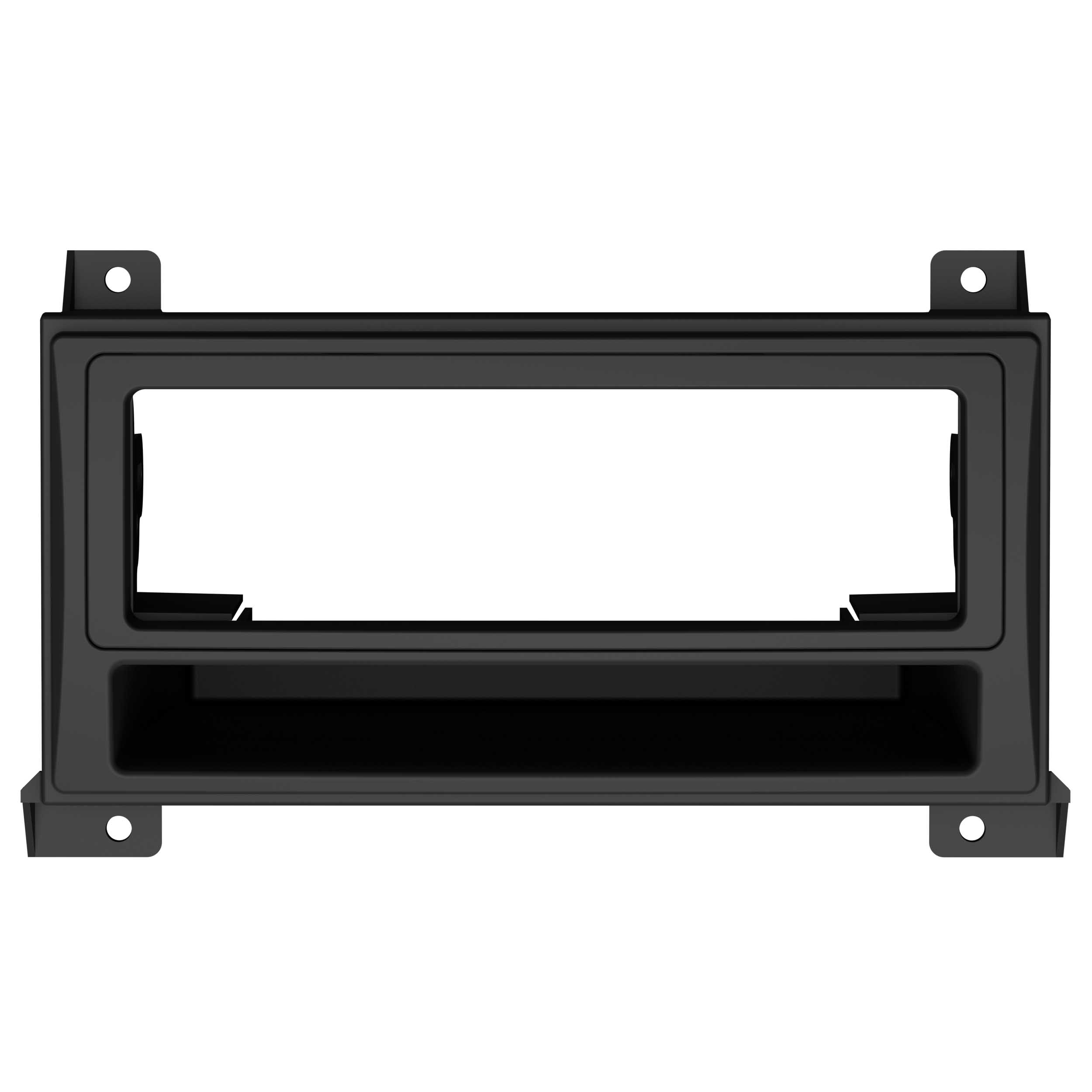 This stereo installation kit has been engineered to help you install a 2” tall (Single-DIN) aftermarket radio into the original vehicle dashboard. This dash kit makes radio replacement simple and comes with a built-in pocket that is located below the 2” radio to fill the extra space in the radio opening, which can be used for storage. The dash kit is painted scratch-resistant matte black to match the original look and feel of the vehicle’s dashboard. Installing an aftermarket radio can upgrade the sound quality and provide additional features the original factory radio couldn’t offer but requires this dash kit to make it fit.