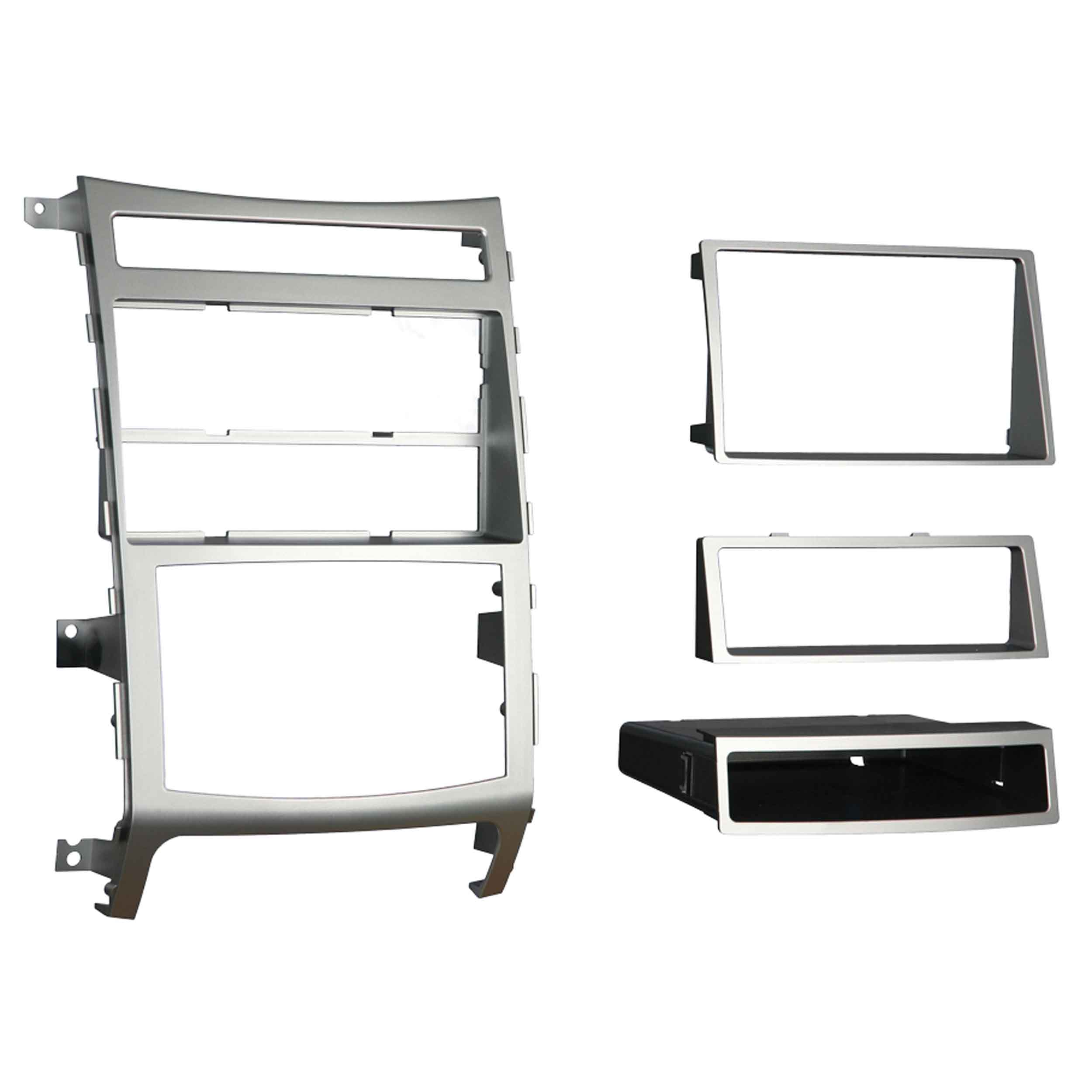 This stereo installation kit has been engineered to help you install either a 2” tall (Single-DIN) or a 4” tall (Double-DIN) aftermarket radio into the original vehicle dashboard. This dash kit makes radio replacement simple and comes with a pocket that is installed below the 2” radio to fill the extra space in the radio opening, which can be used for storage. The pocket is not needed when installing a 4” tall radio. The dash kit is painted silver to match the original look and feel of the vehicle’s dashboard. Installing an aftermarket radio can upgrade the sound quality and provide additional features the original factory radio couldn’t offer but requires this dash kit to make it fit.