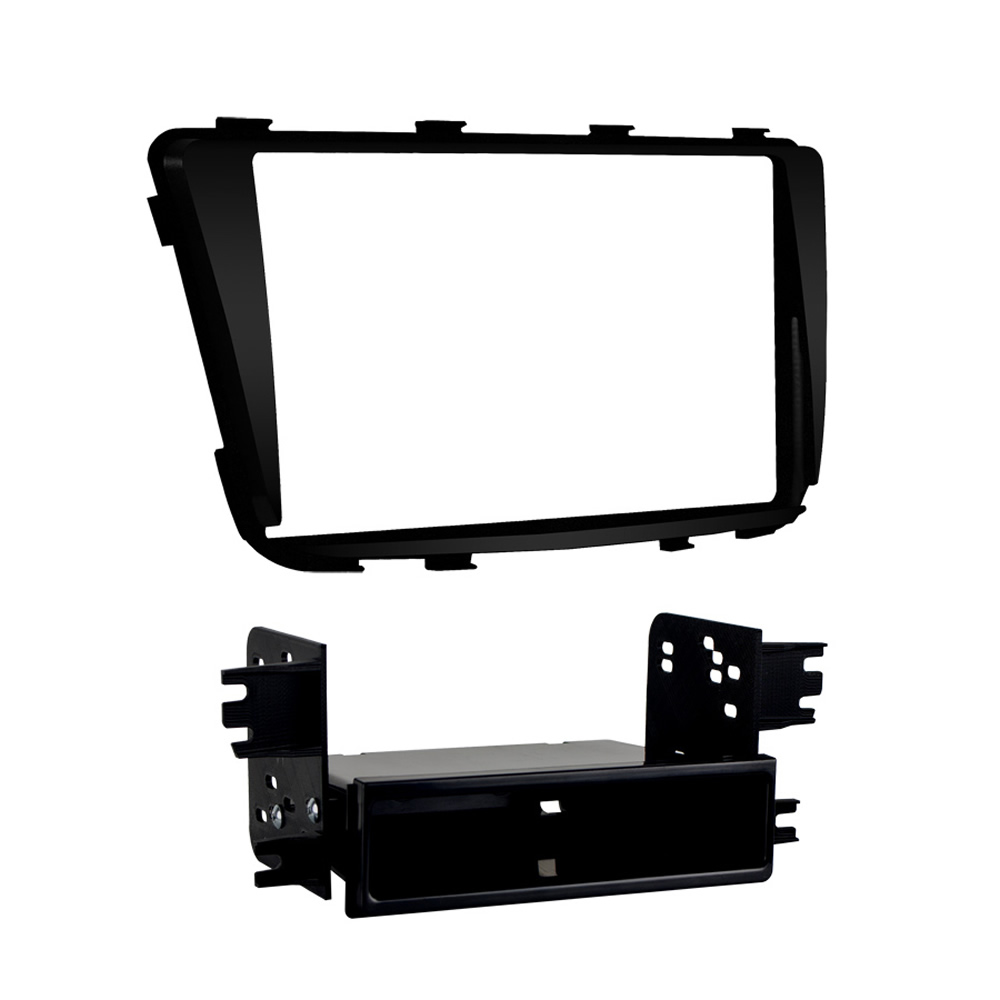 This stereo installation kit has been engineered to help you install either a 2” tall (Single-DIN) or a 4” tall (Double-DIN) aftermarket radio into the original vehicle dashboard. This dash kit makes radio replacement simple and comes with a pocket that is installed below the 2” radio to fill the extra space in the radio opening, which can be used for storage. The pocket is not needed when installing a 4” tall radio. The dash kit is painted scratch-resistant matte black to match the original look and feel of the vehicle’s dashboard. Installing an aftermarket radio can upgrade the sound quality and provide additional features the original factory radio couldn’t offer but requires this dash kit to make it fit.