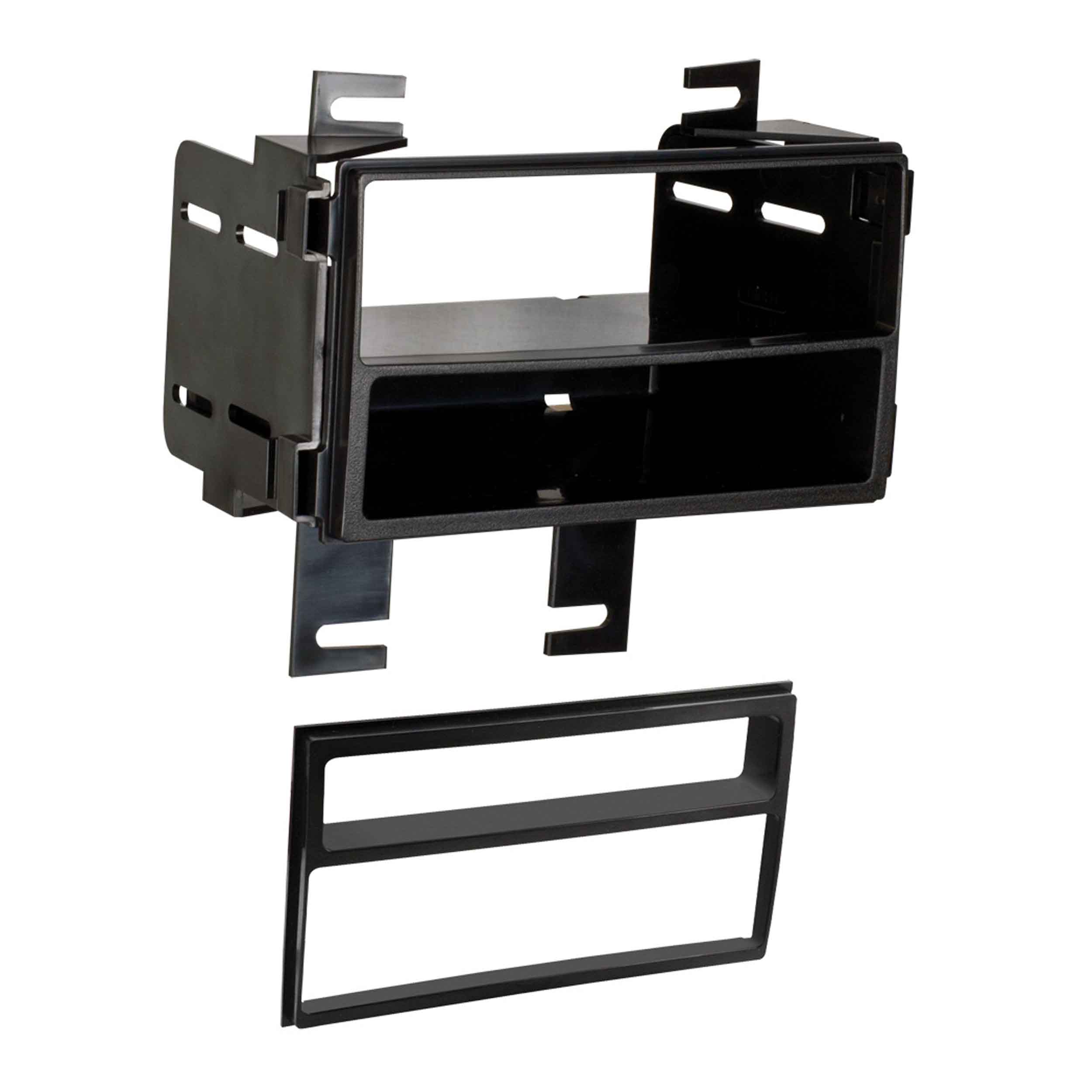 This stereo installation kit has been engineered to help you install either a 2” tall (Single-DIN) or a 4” tall (Double-DIN) aftermarket radio into the original vehicle dashboard. This dash kit makes radio replacement simple and comes with a pocket that is located below the 2” radio to fill the extra space in the radio opening, which can be used for storage. The pocket is not needed when installing a 4” tall radio. The dash kit is designed to match the original look and feel of the vehicle’s dashboard. Installing an aftermarket radio can upgrade the sound quality and provide additional features the original factory radio couldn’t offer but requires this dash kit to make it fit.