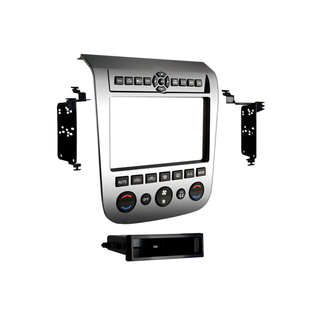 This stereo installation kit has been engineered to help you install either a 2" tall (Single-DIN) or a 4" tall (Double-DIN) aftermarket radio into the original vehicle dashboard. This dash kit makes radio replacement simple and comes with a pocket that is installed below the 2" radio to fill the extra space in the radio opening, which can be used for storage. The pocket is not needed when installing a 4" tall radio. The dash kit is finished with a brushed aluminum coating to match the original look and feel of the vehicle's dashboard. Installing an aftermarket radio can upgrade the sound quality and provide additional features the original factory radio couldn't offer but requires this dash kit to make it fit.
