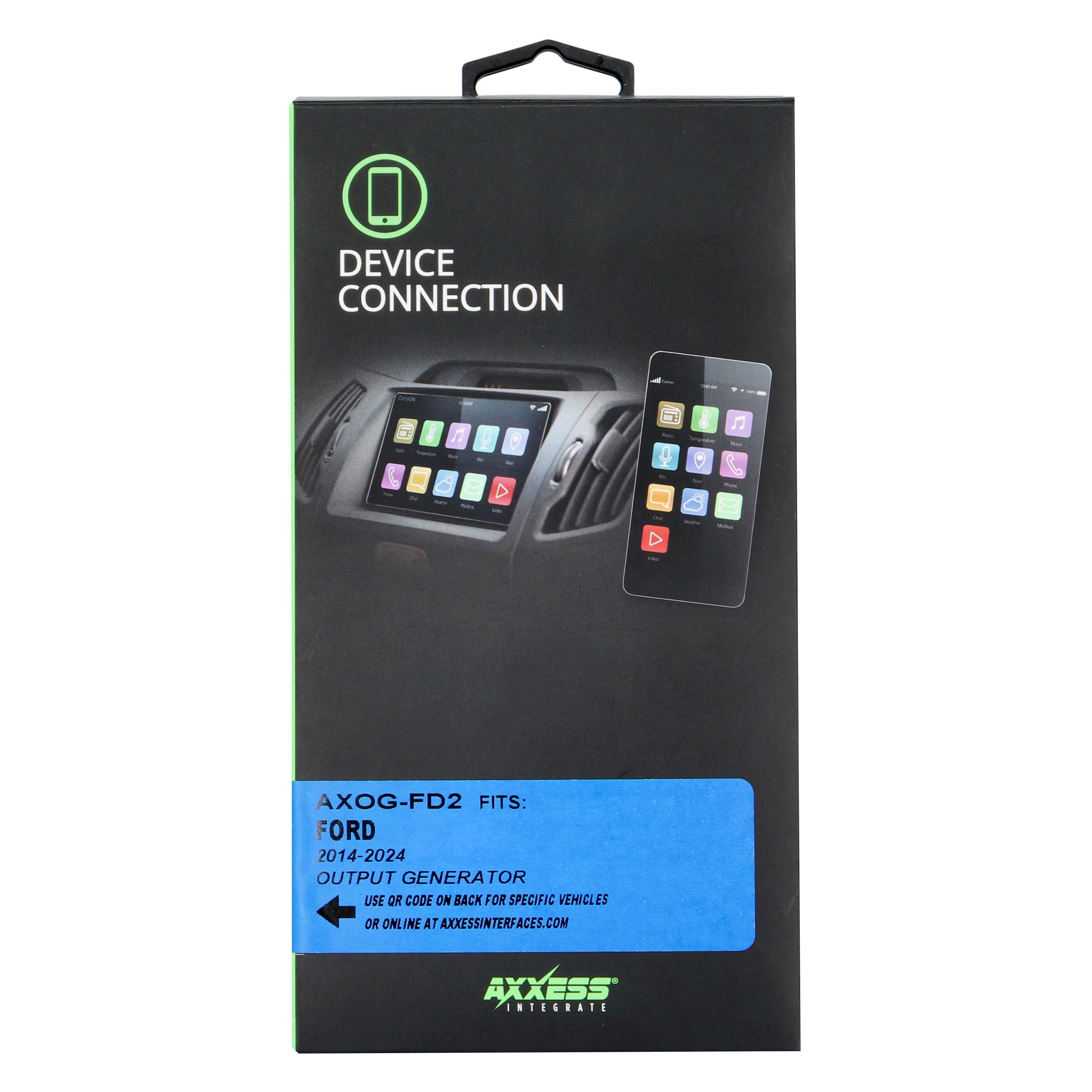 Add up to eight accessory outputs to power your radar detector, aftermarket backup camera, or other devices with this output generator. This product is designed to fit 2014-2022 Ford vehicles and is easy to install with plug-n-play wiring. Outputs can be remotely configured using the free downloadable Axxess Updater app for Windows.