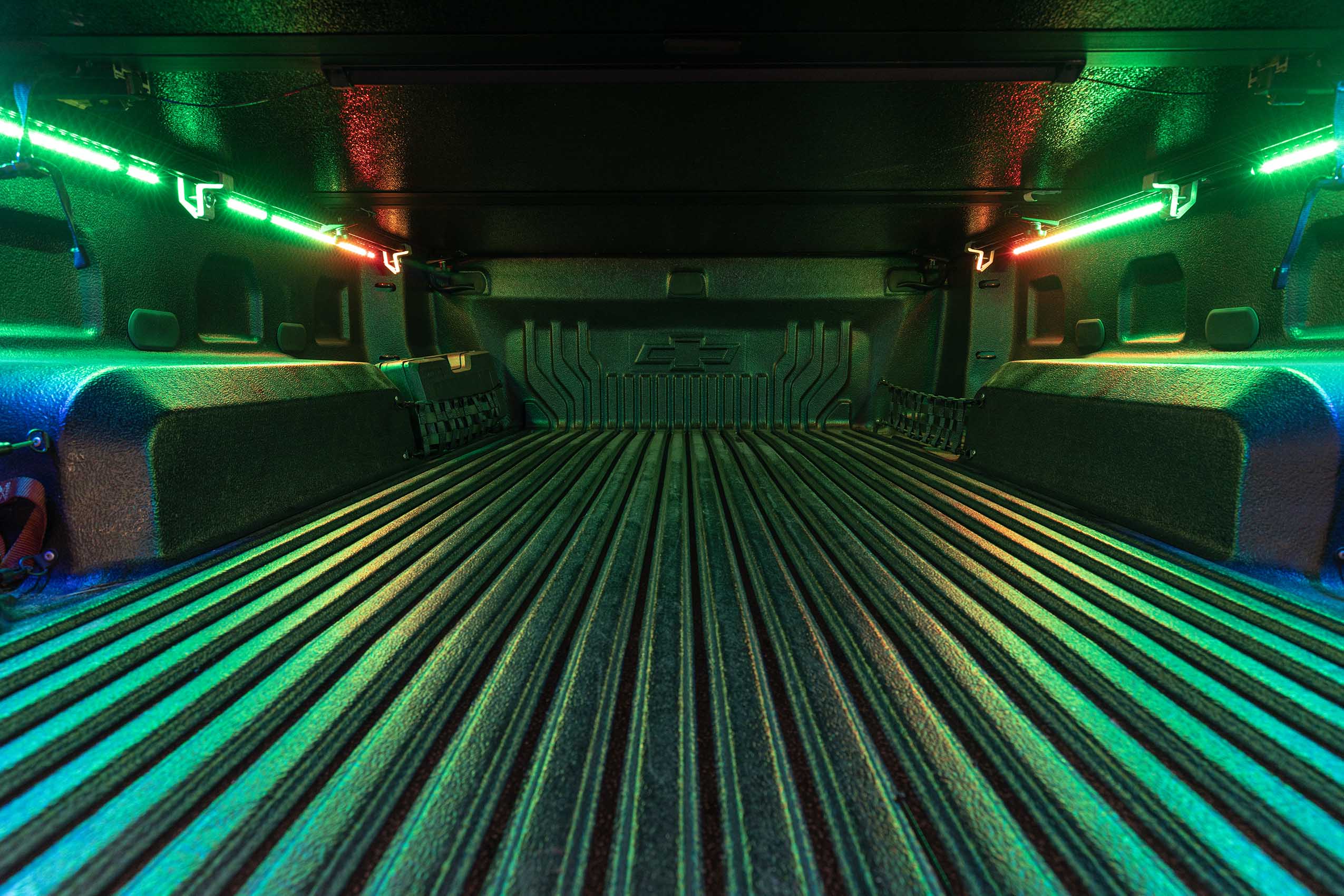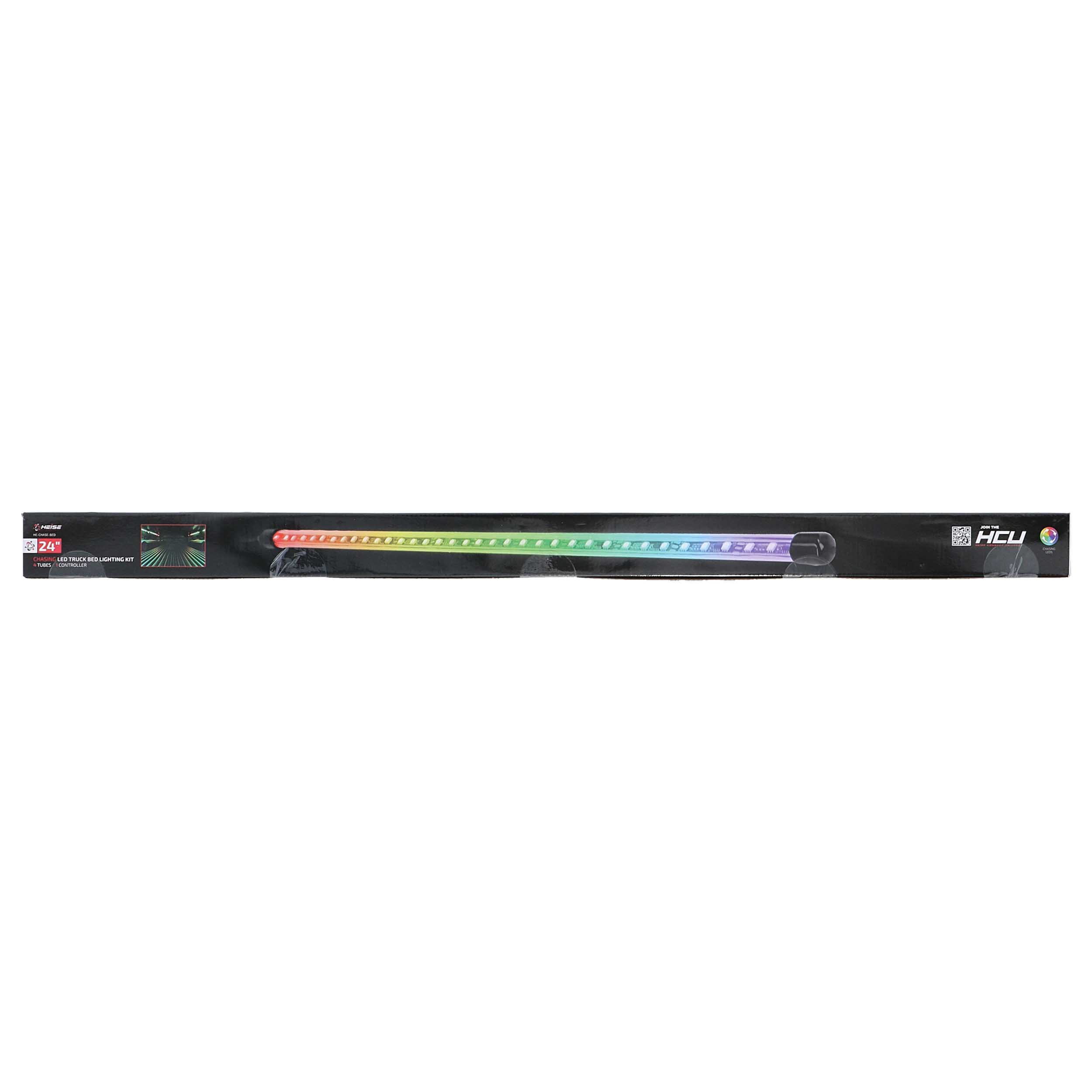 Illuminate dark truck beds, making it easier to locate cargo items at night. This durable LED bed lighting kit includes four 24” chasing LED tubes, a Heise Connect Controller, cables, RF remote, and hardware. This kit works cohesively with all Heise chasing LED lighting as part of the Heise Connect Universe (HCU). It is controlled using the included RF remote or the Heise Connect app, available for download on smartphones and tablets. Users can choose a crisp white setting for maximum bed illumination or one of 170+ color-changing patterns, DIY lighting patterns, music sync, and more for a tailgate party vibe.