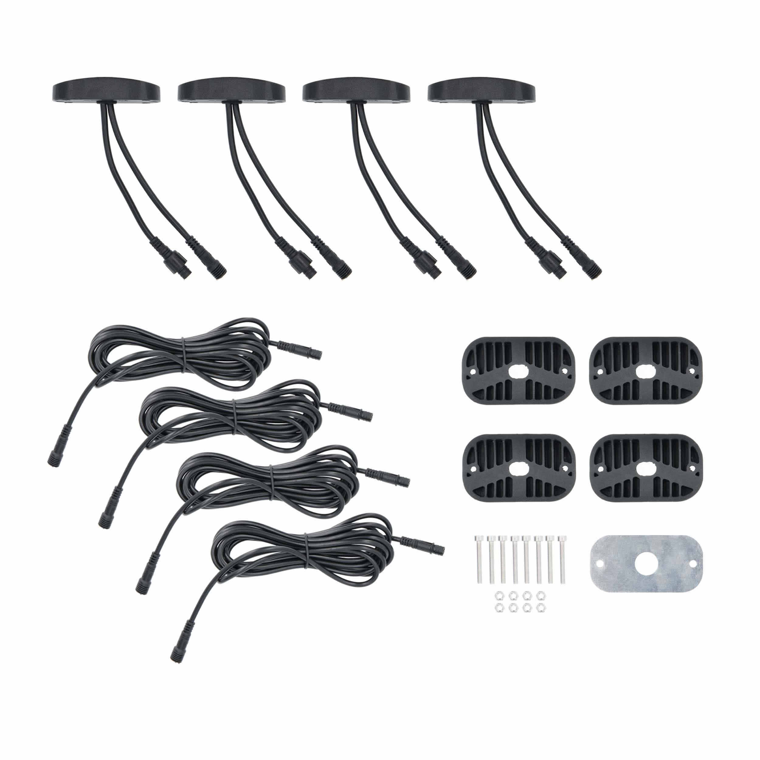 Quickly and easily expand any vehicle’s Heise LED chasing lighting system or replace damaged rock lights with this chasing rock light expansion pack. This kit can be paired with virtually any Heise LED chasing product and includes four daisy-chainable rock lights, four curved rubber-covered mounting bases, four 10-foot extension cables, and a drill template. These lights can be paired with the Heise Connect chasing controller, sold separately, to display 170+ pre-programmed chasing patterns that can be controlled via the Heise Connect mobile app.