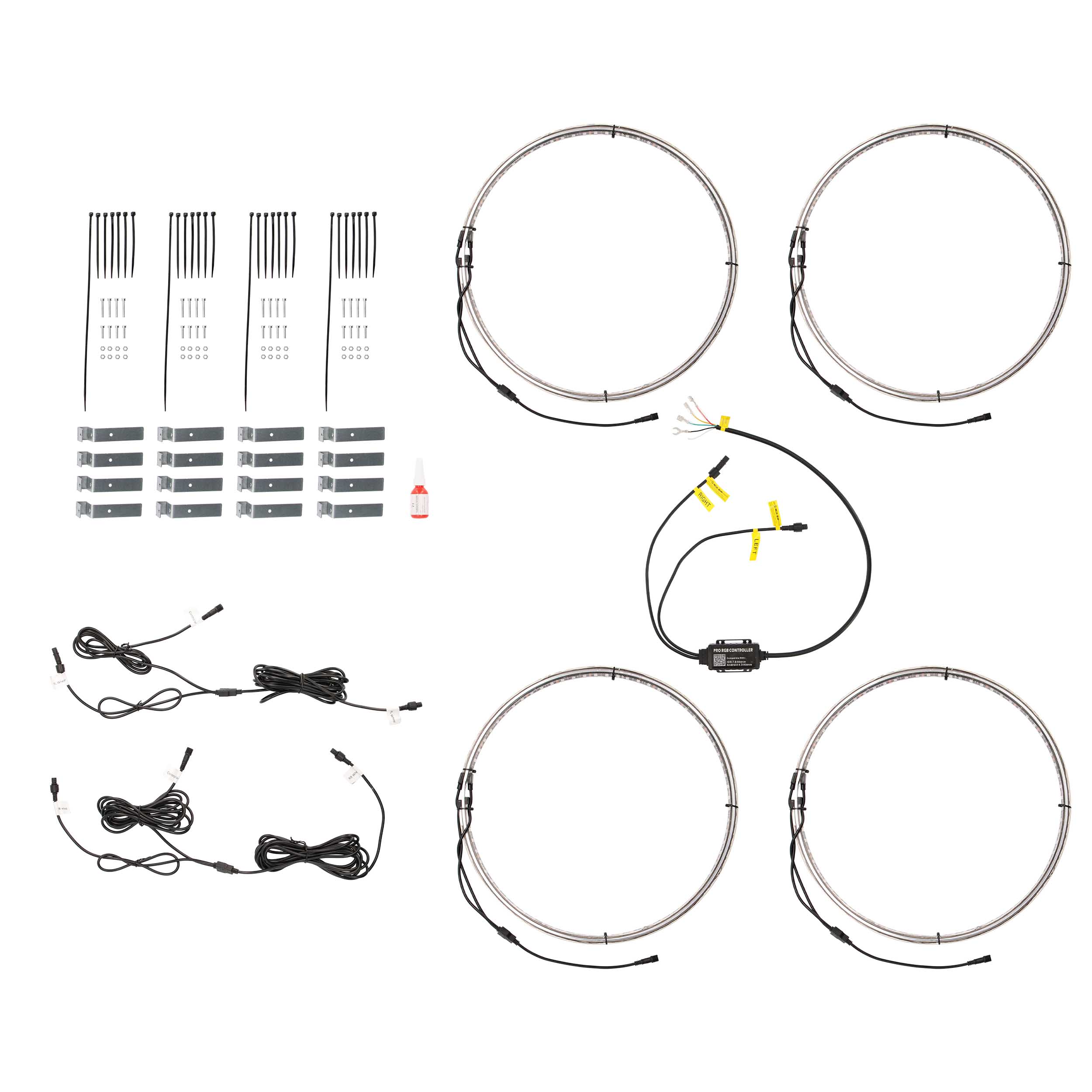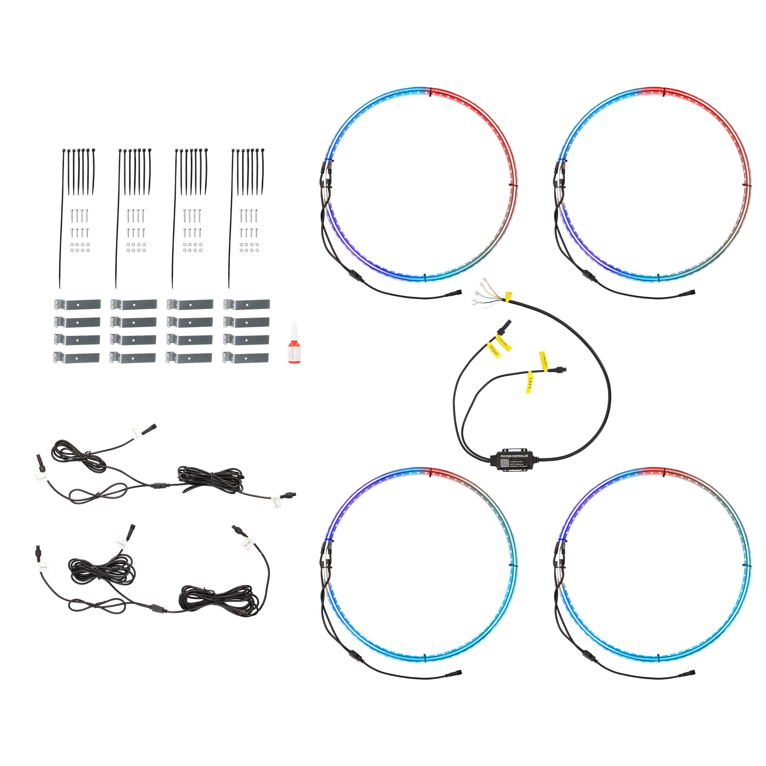 - Double sided LED strips that will vibrantly light up the vehicles wheels