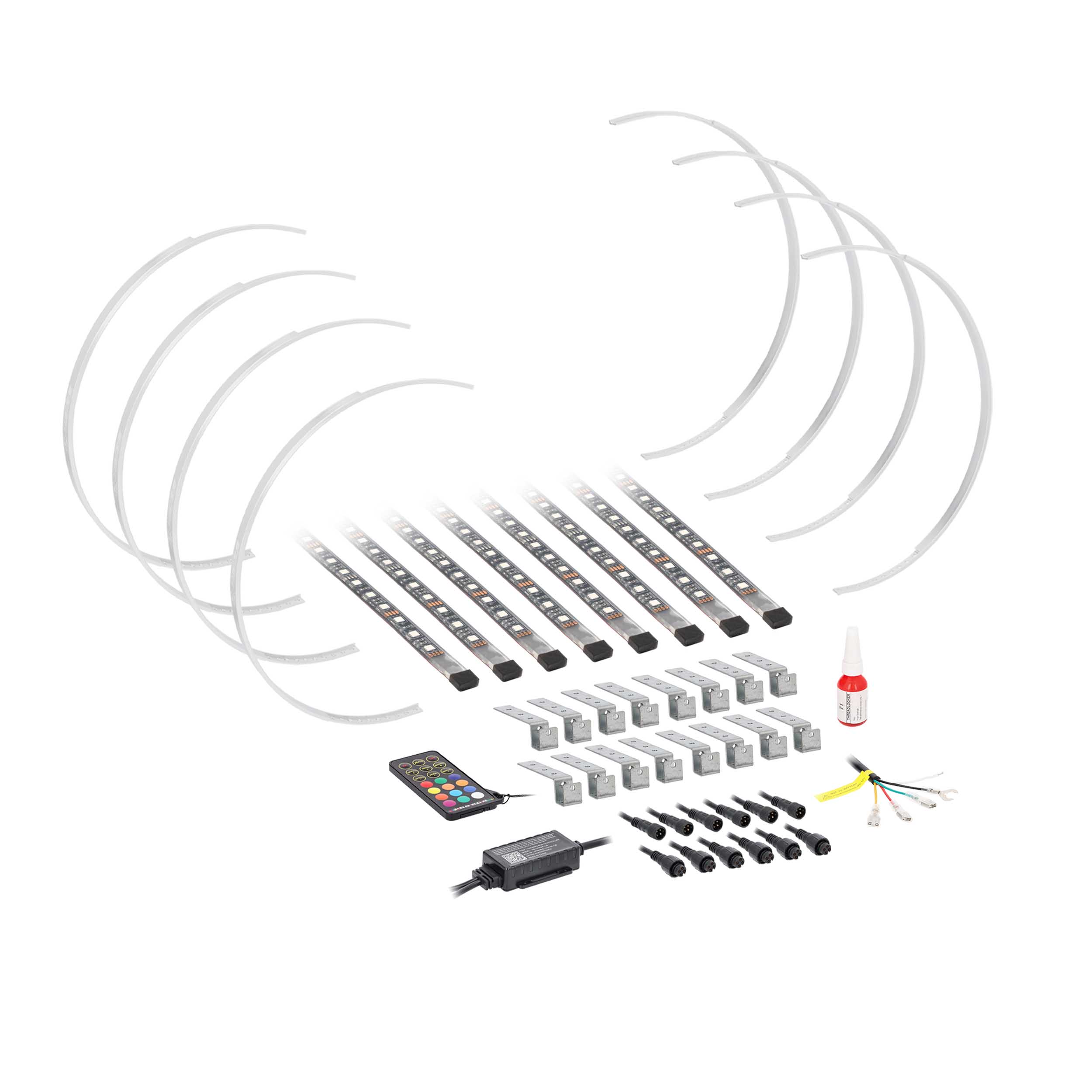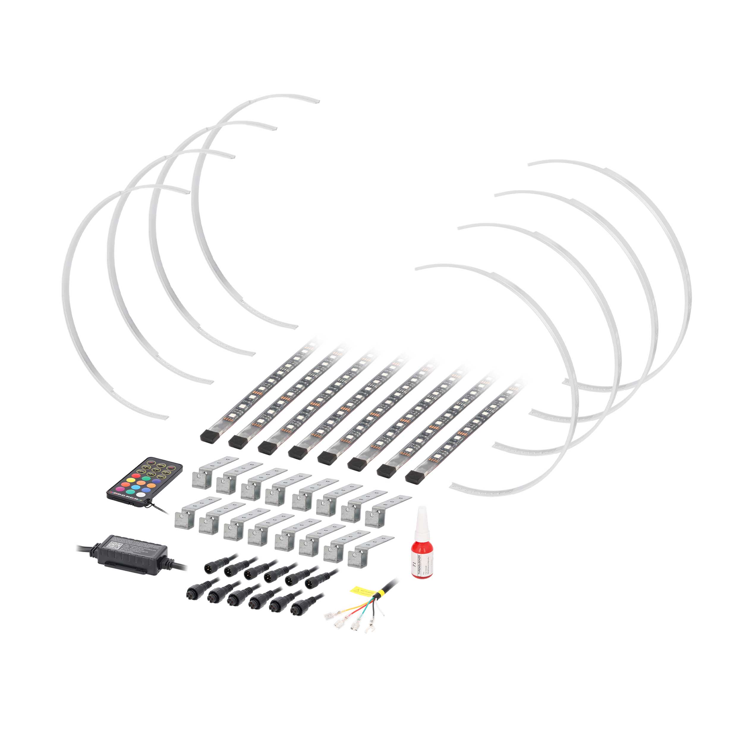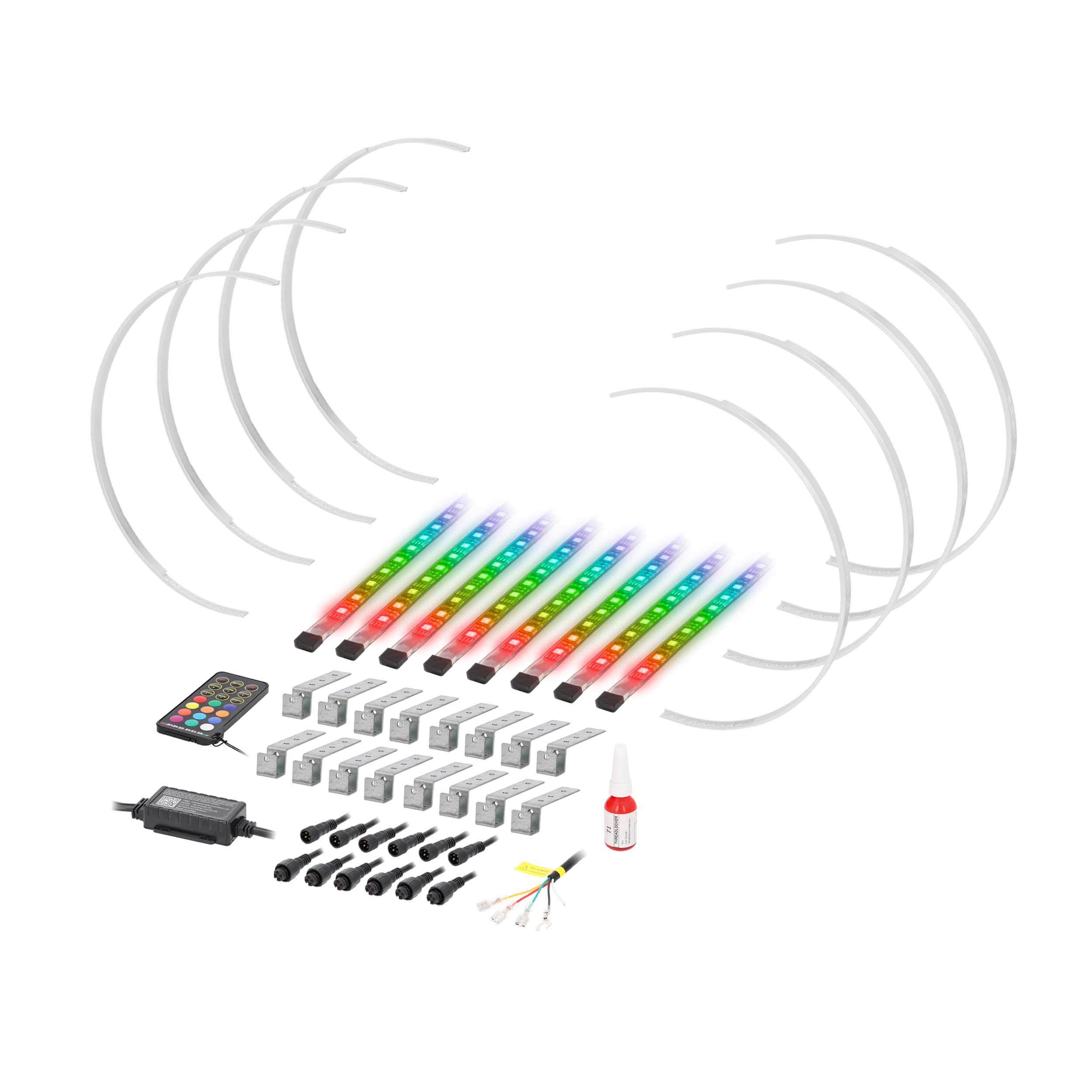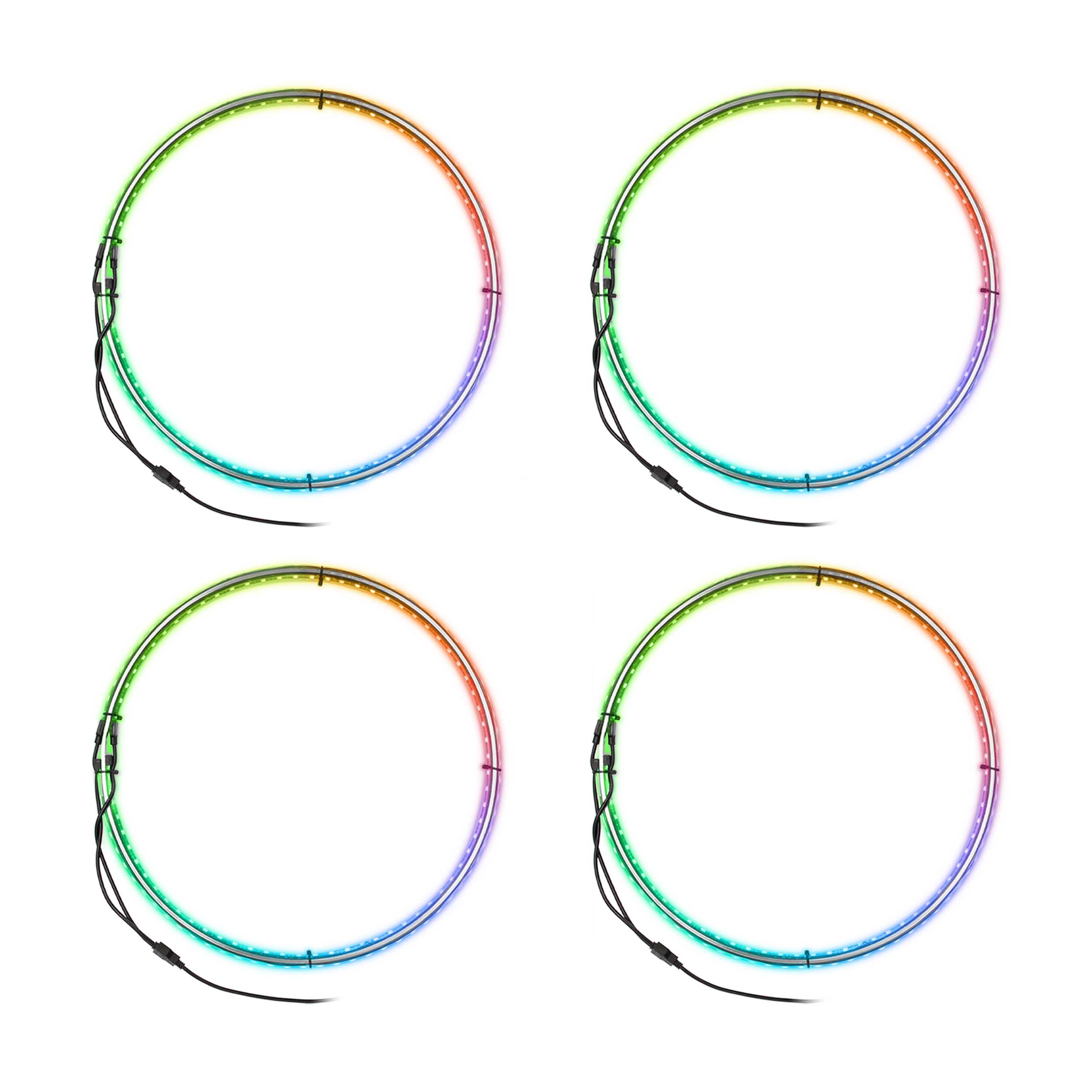 Heise LED Chasing expandable wheel rings have a revolutionary patent-pending design that makes it easy to add brilliant Chasing LED lighting to the wheels of any vehicle. This kit includes four aluminum expandable wheel rings, cuttable LED strips, mounting brackets and hardware, two backbone harnesses for the left and right sides of the vehicle, a Heise Connect Chasing Controller, an RF remote, and thread lock. The wheel rings expand from 15” to 18” to fit a wide range of vehicles.