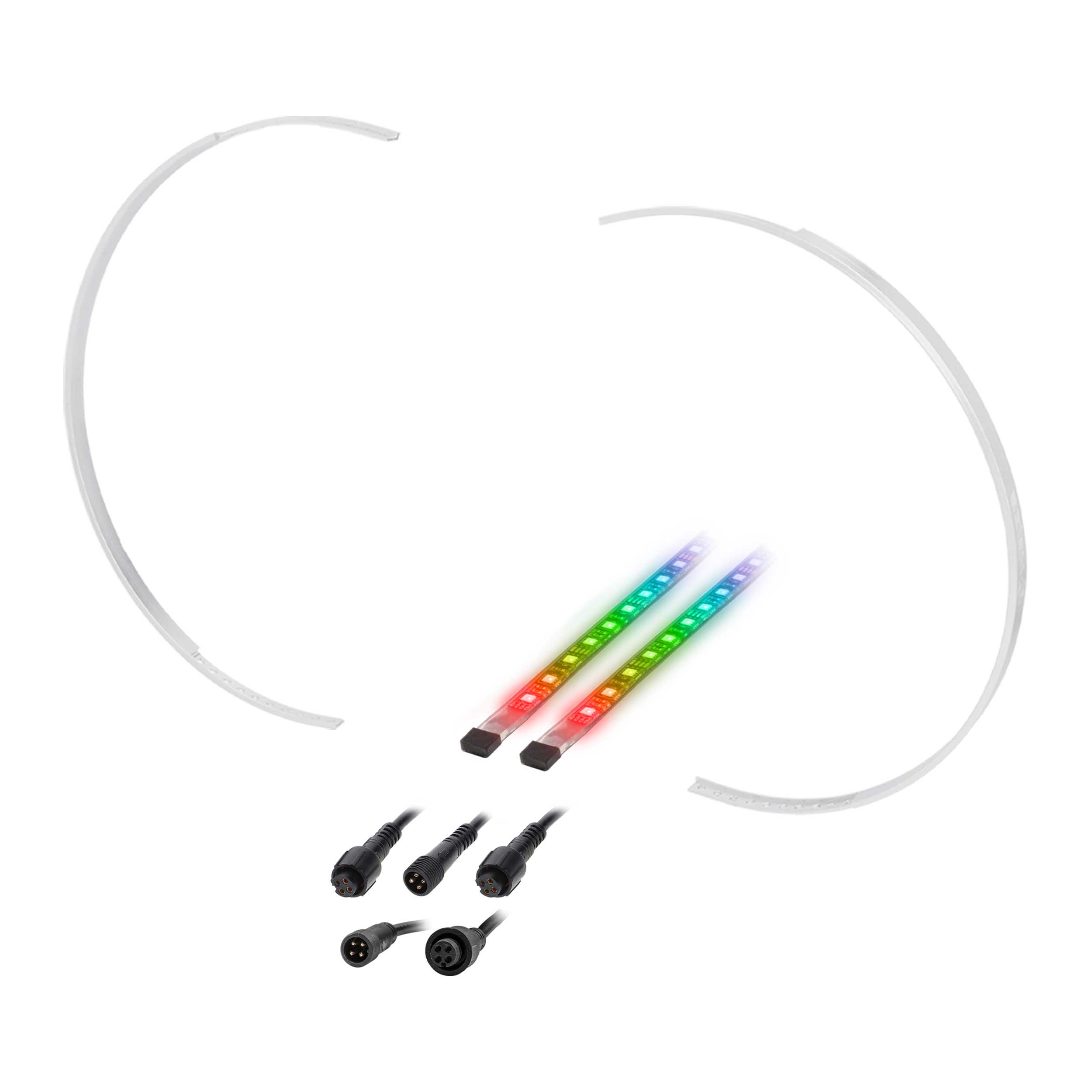 This chasing expandable wheel ring makes it easy to replace a damaged wheel ring or take your Heise LED lighting system to the next level by illuminating your vehicle’s mounted spare tire. A revolutionary patent-pending design makes it easy to expand the wheel ring from 15” to 18” to fit a wide range of vehicles. This kit includes two aluminum expandable wheel ring segments, a cuttable LED strip, a 10-foot extension cable, Y adapter, thread lock, mounting brackets, and hardware. This wheel light must be paired with a Heise Connect chasing controller (HE-CHASE-CB), sold separately, so the LEDs can be remotely controlled using the free downloadable Heise Connect mobile app for smartphones and tablets. The app features 170+ pre-programmed chasing patterns, a DIY pattern option that allows for selecting up to 16 colors and 3 motion effects, a brake function, a music sync function, and more. Lighting systems that rely on a Heise Connect controller with a set of four wheel rings already connected will require a second controller to support the addition of this fifth wheel ring to their spare tire. Users can easily group these two controllers within the Heise Connect app for cohesive control of the system.