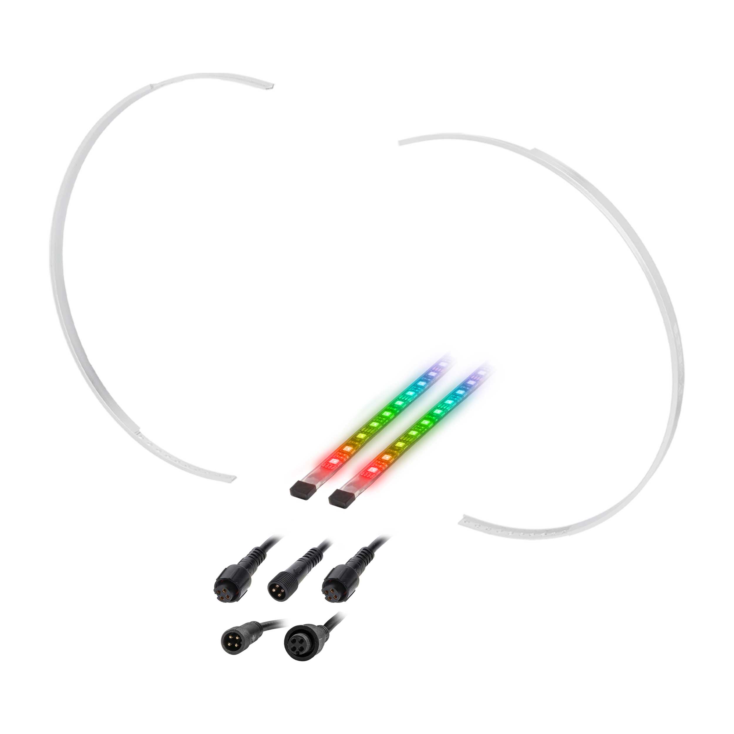 This chasing expandable wheel ring makes it easy to replace a damaged wheel ring or take your Heise LED lighting system to the next level by illuminating your vehicle’s mounted spare tire. A revolutionary patent-pending design makes it easy to expand the wheel ring from 11” to 14” to fit a wide range of vehicles. This kit includes two aluminum expandable wheel ring segments, a cuttable LED strip, a 10-foot extension cable, Y adapter, thread lock, mounting brackets, and hardware. This wheel light must be paired with a Heise Connect chasing controller (HE-CHASE-CB), sold separately, so the LEDs can be remotely controlled using the free downloadable Heise Connect mobile app for smartphones and tablets. The app features 170+ pre-programmed chasing patterns, a DIY pattern option that allows for selecting up to 16 colors and 3 motion effects, a brake function, a music sync function, and more. Lighting systems that rely on a Heise Connect controller with a set of four wheel rings already connected will require a second controller to support the addition of this fifth wheel ring to their spare tire. Users can easily group these two controllers within the Heise Connect app for cohesive control of the system.
