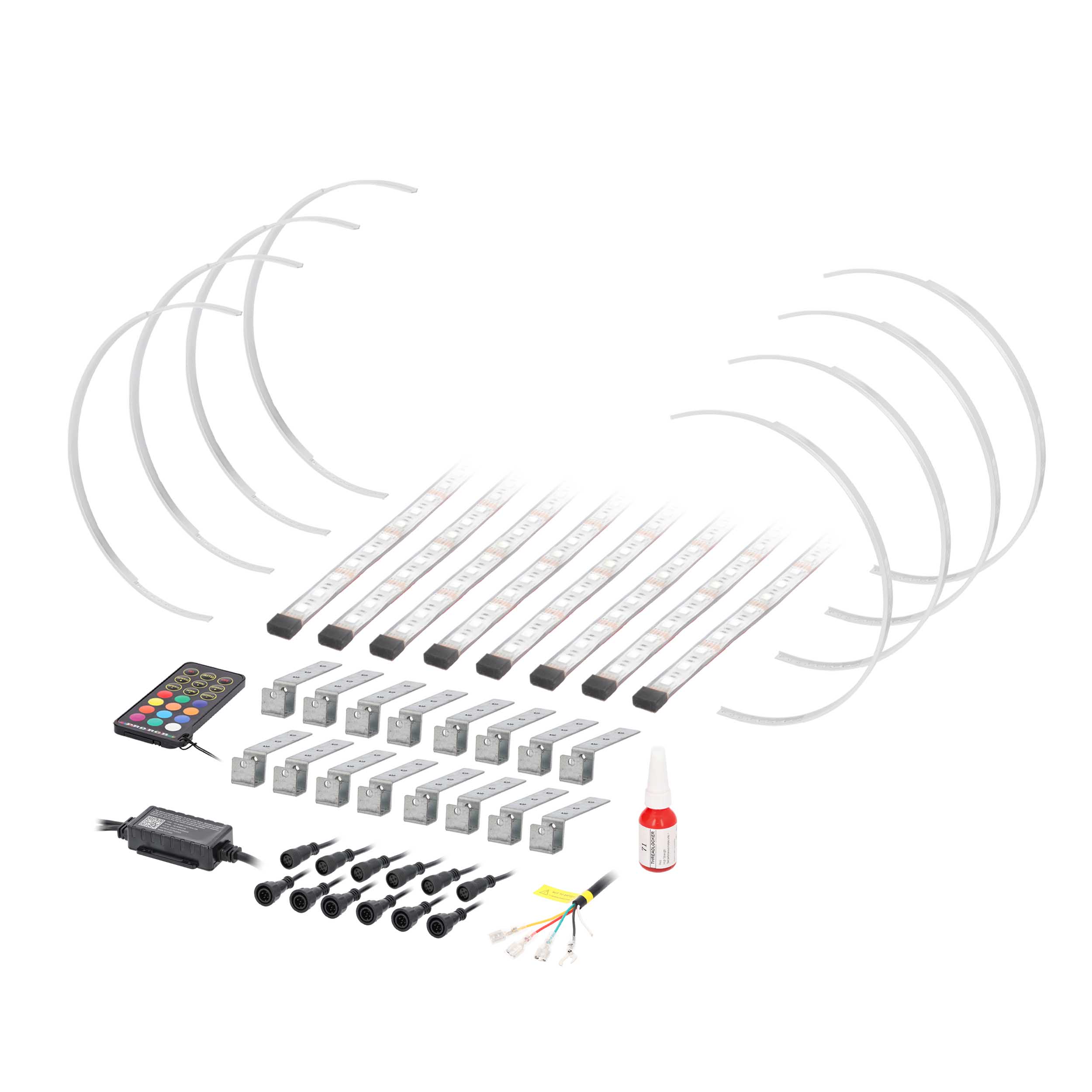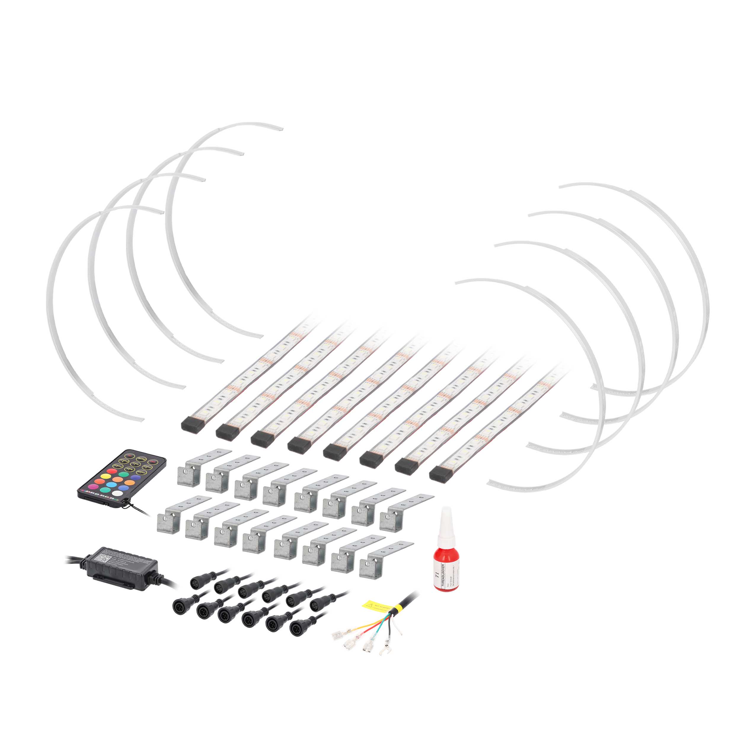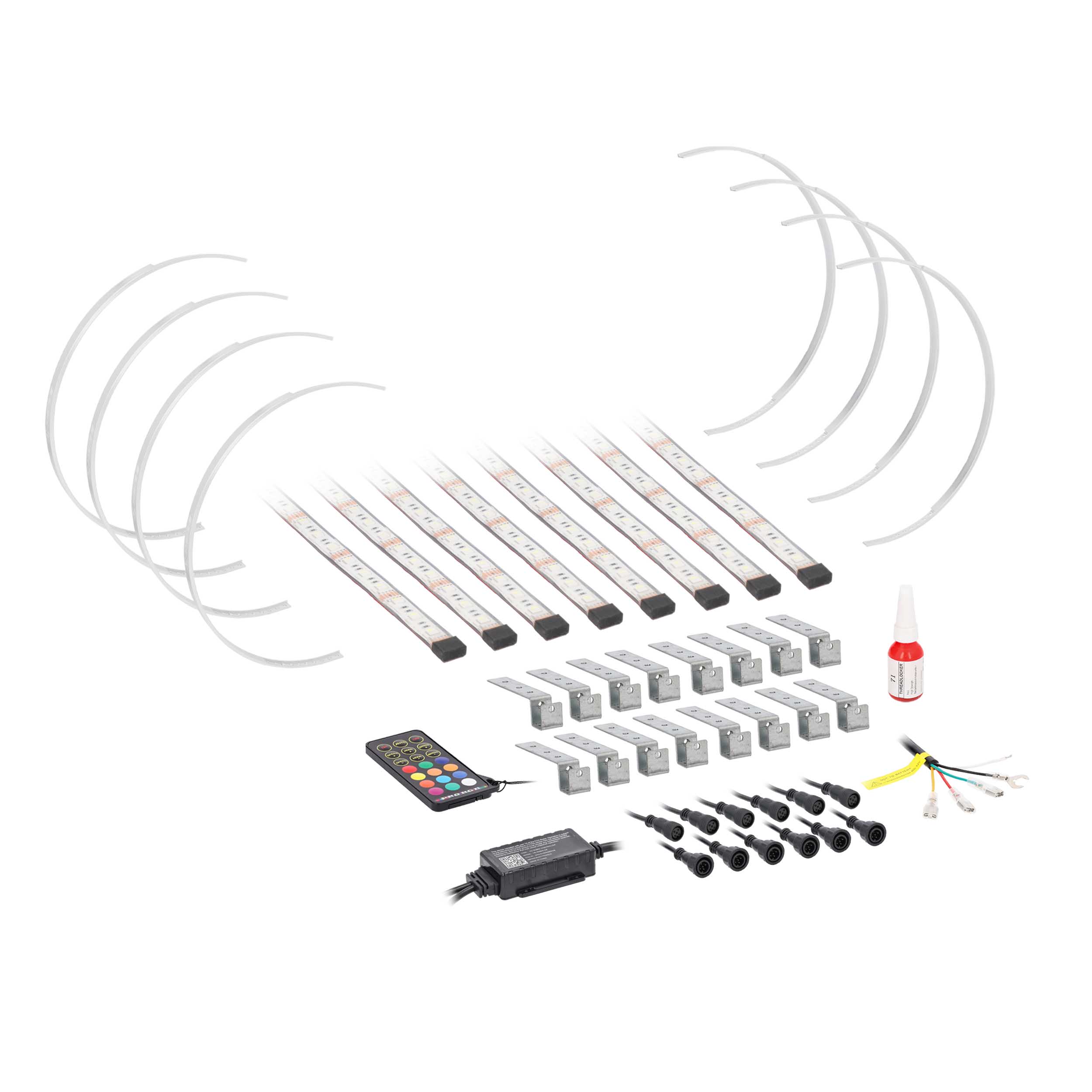 Heise RGBW expandable wheel rings have a revolutionary patent-pending design that makes it easy to add brilliant LED lighting to the wheels of any vehicle. This kit includes four aluminum expandable wheel rings, cuttable LED strips, mounting brackets and hardware, two backbone harnesses for the left and right sides of the vehicle, a Heise Connect RGBW Controller, an RF remote, and thread lock. The wheel rings expand from 11” to 14” to fit a wide range of vehicles.