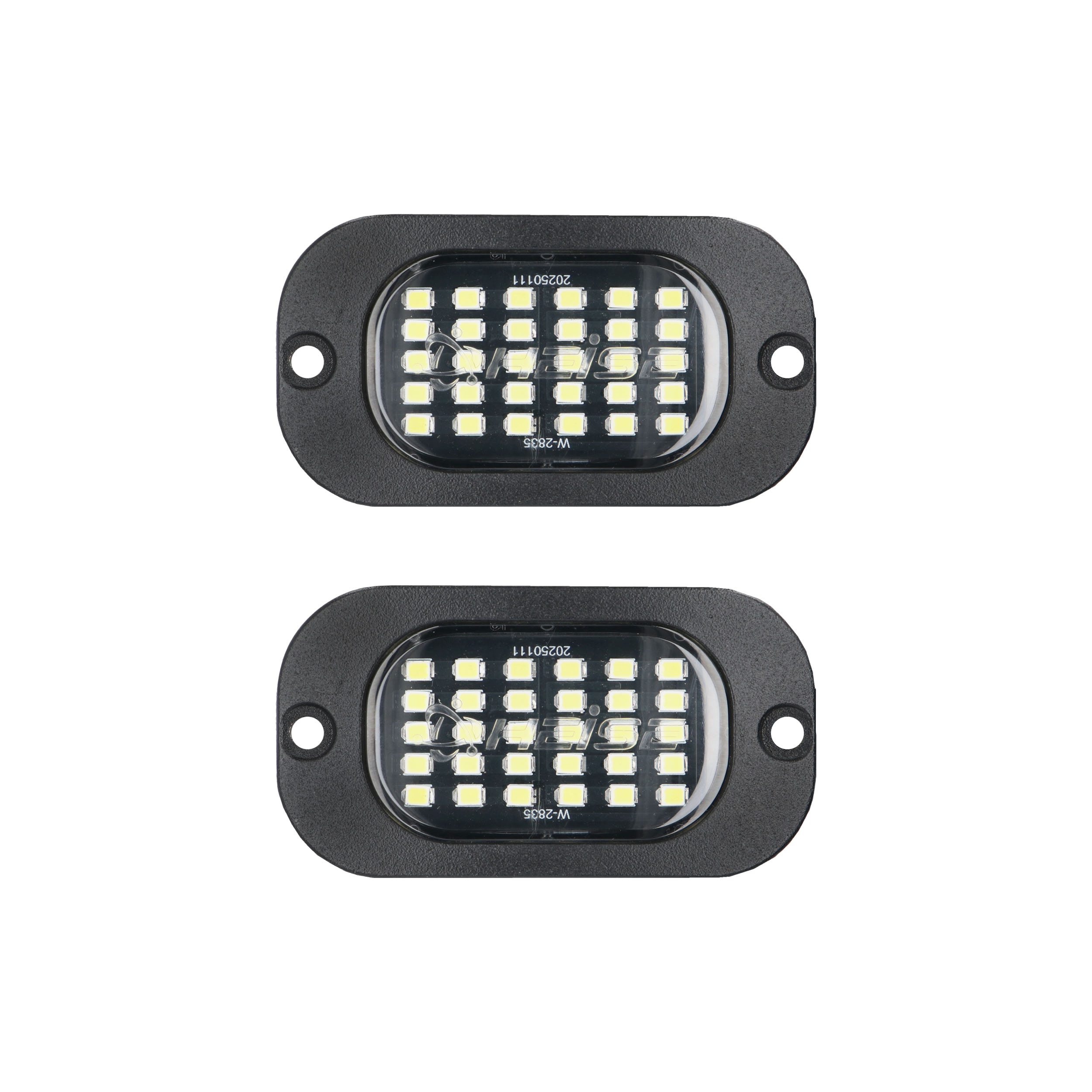 Quickly and easily add brilliant accent lighting to any vehicle with this 2-pack of white wide-angle rock lights. Included are two rock lights, curved mounting bases, and all the necessary hardware. Each light has an improved output angle over traditional rock lights, is daisy-chainable, and can be connected to a basic switch for easy on/off control.
