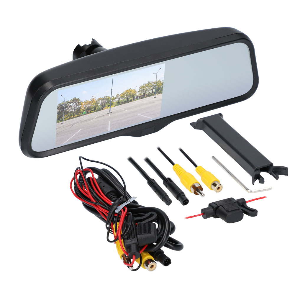 This monitor has signal sensing to show the rearview camera feed when driving in reverse. It is engineered for outdoor vehicles and recommended for use with iBEAM’s TE-MIFM or TE-SBC cameras, but will work with most aftermarket camera inputs. The replacement rearview mirror is 9 inches wide by 3 inches high and features a 4.5-inch digital color LCD screen integrated within the mirror.