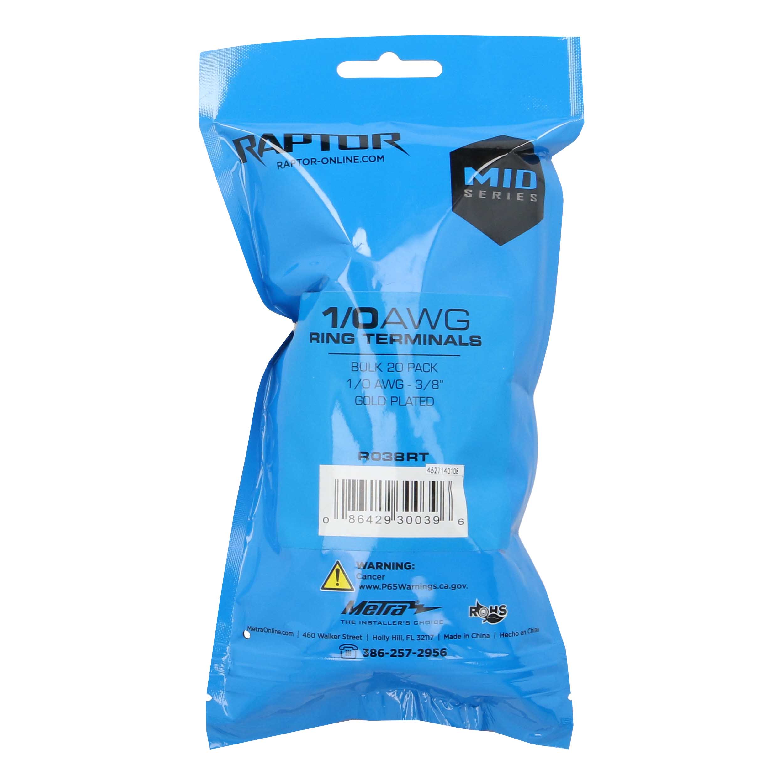 1/0 AWG 3/8 Inch Gold Ring Terminal - 20 PK