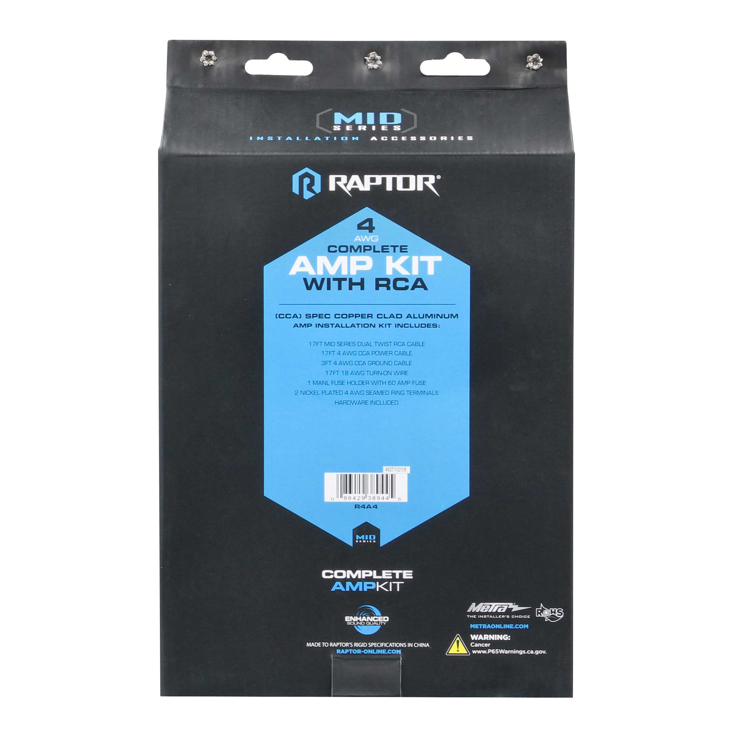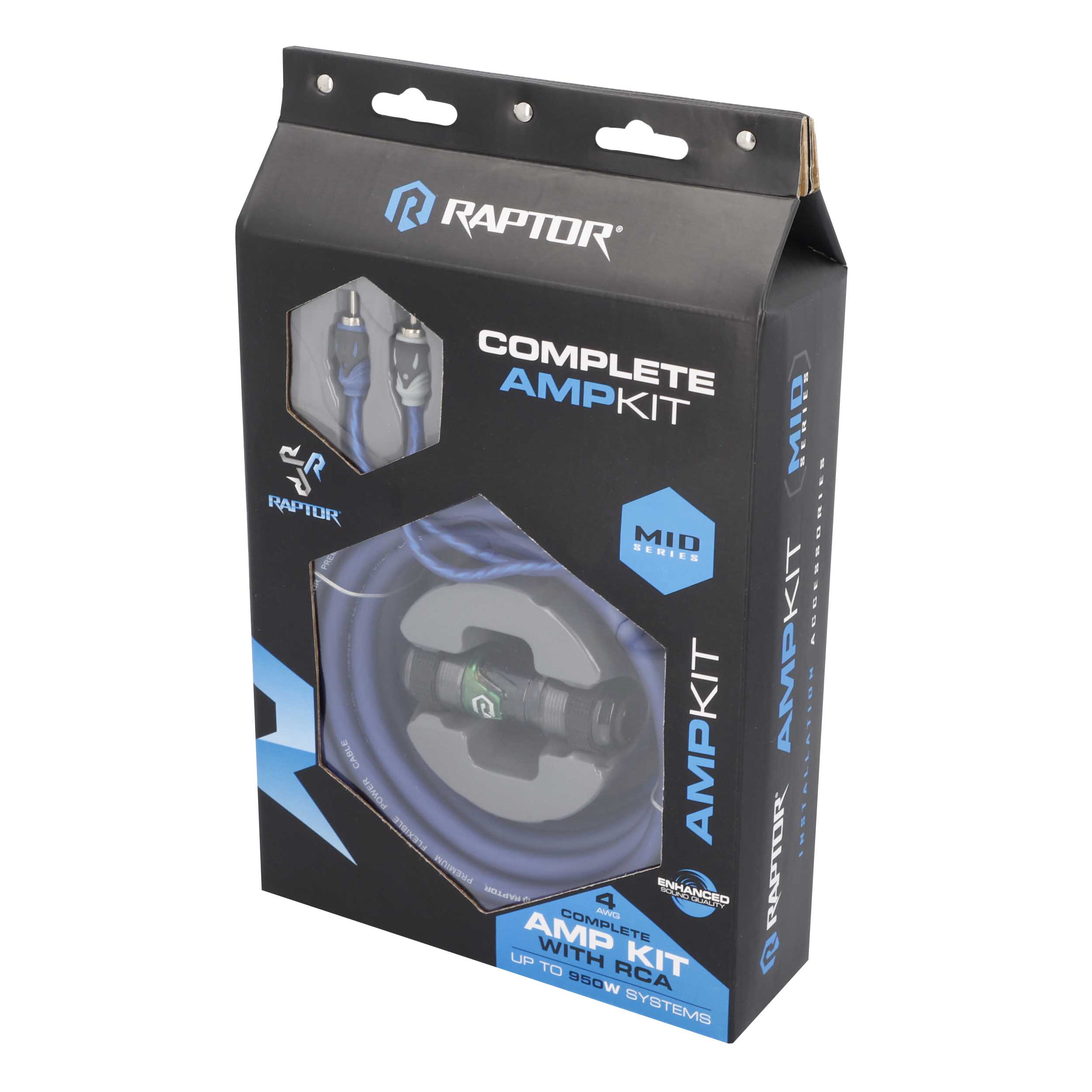 RAPTOR CCA 950W 4 AWG Amp Kit with RCA Cable - Mid Series