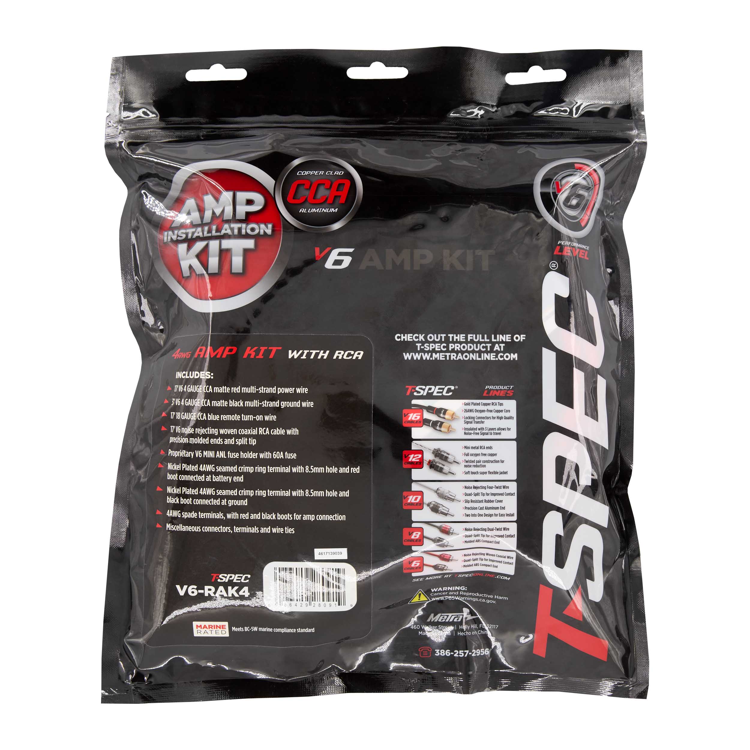 T-SPEC CCA 4 AWG 1000W AMP KIT WITH RCA - V6 SERIES