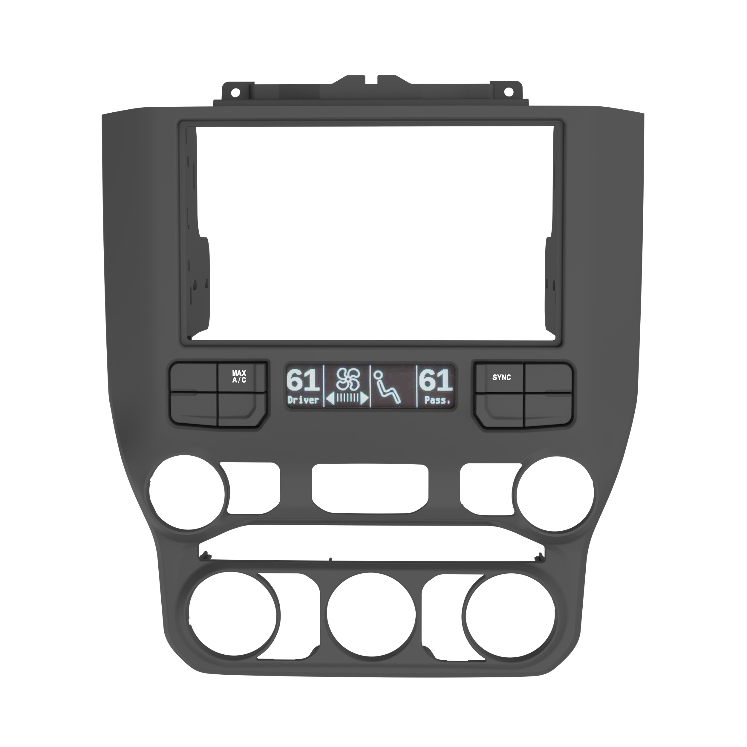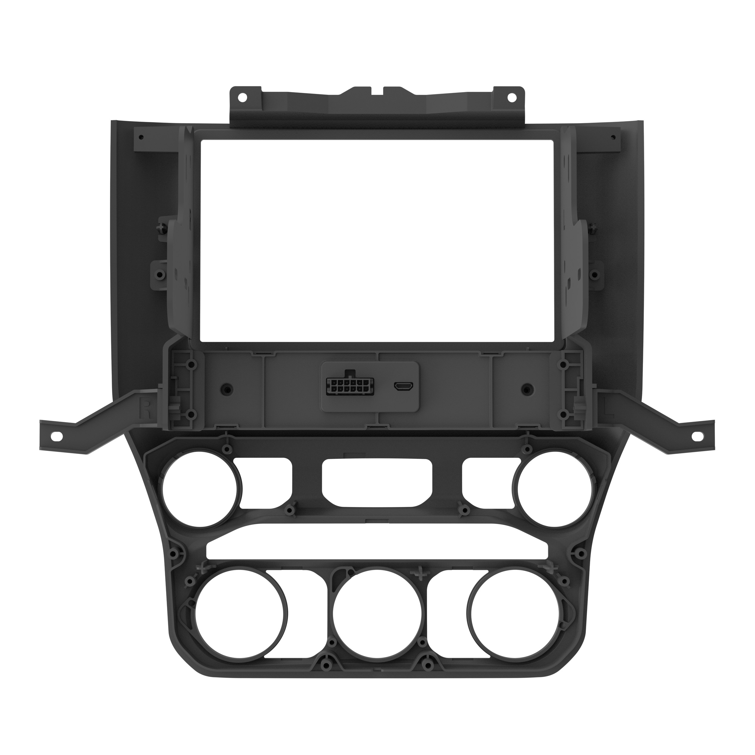 The 107-CH6B is designed to fit 2019-UP* RAM trucks. This dash kit is designed to install shallow-mount, modular, or L-shaped radios with the chassis at the bottom of the screen. A full-size Double-DIN installation will require extensive sub-dash modifications. The 107-CH6B is painted scratch-resistant matte black to complement the factory dash. Installing an aftermarket radio can upgrade the sound quality and provide additional features the original factory radio couldn’t offer, but this dash kit is required to make it fit.