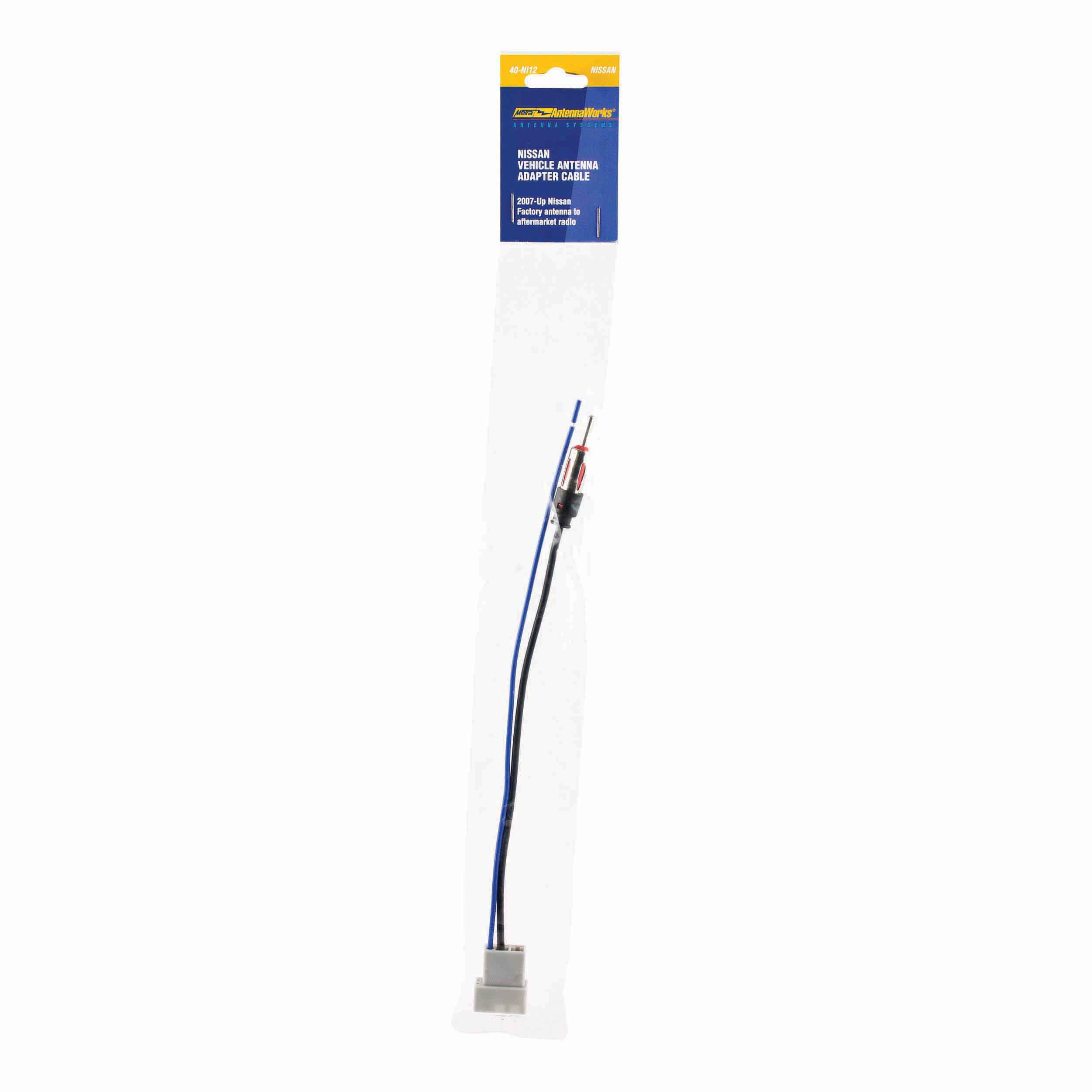 If you are replacing the radio in your vehicle, this antenna cable adapter ensures that you can continue to use your factory antenna. It is a simple yet necessary cable that adapts the vehicle’s original antenna cable to plug into an aftermarket radio with a male Motorola™ connector a blue wire lead on one end on one end, and a Nissan-style antenna connector on the other.