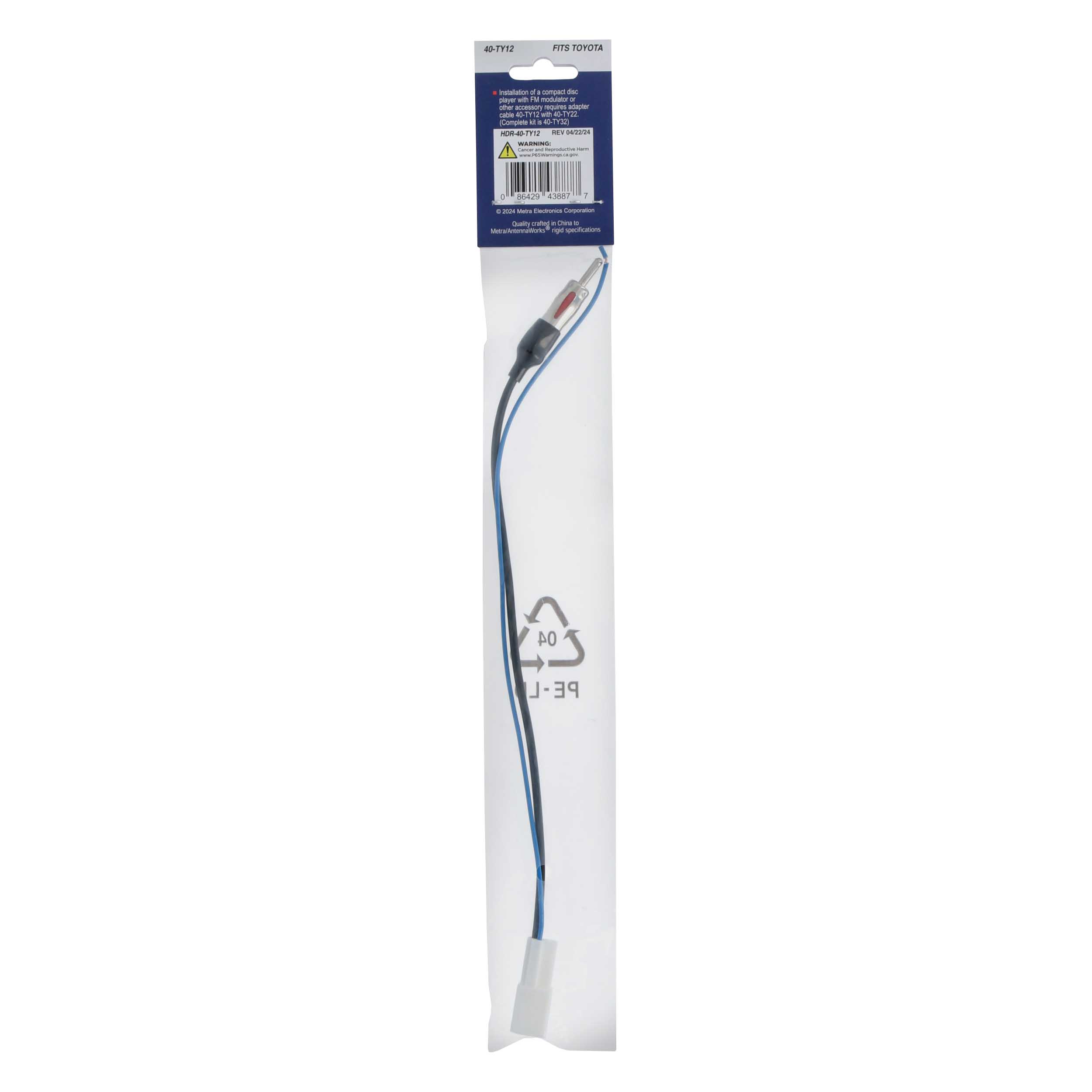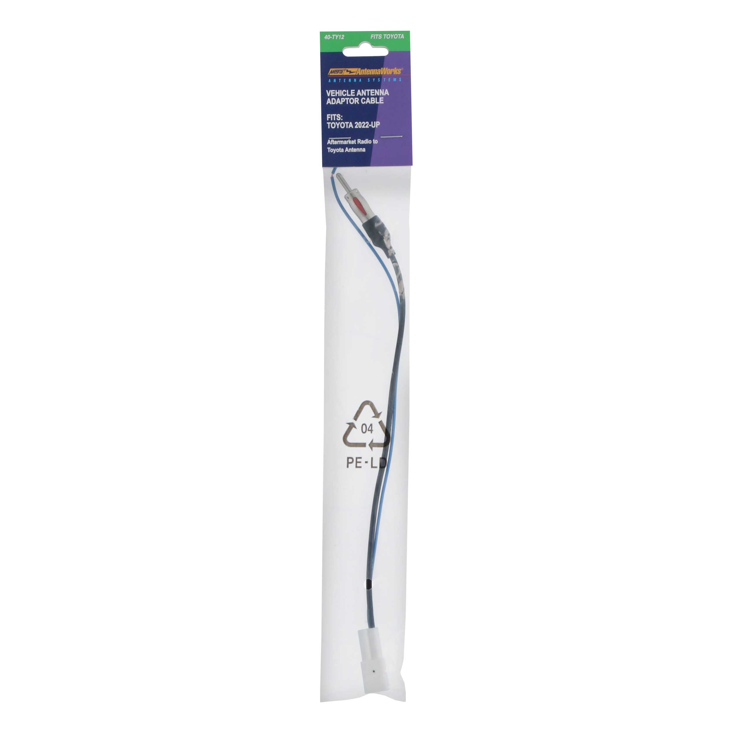 If you are replacing the radio in your vehicle, this antenna cable adapter ensures you can continue using your factory antenna. It is a simple yet necessary cable that adapts the vehicle's original antenna cable to plug into an aftermarket radio with a male Motorola™ connector on one end and a female Toyota-style antenna connector on the other.