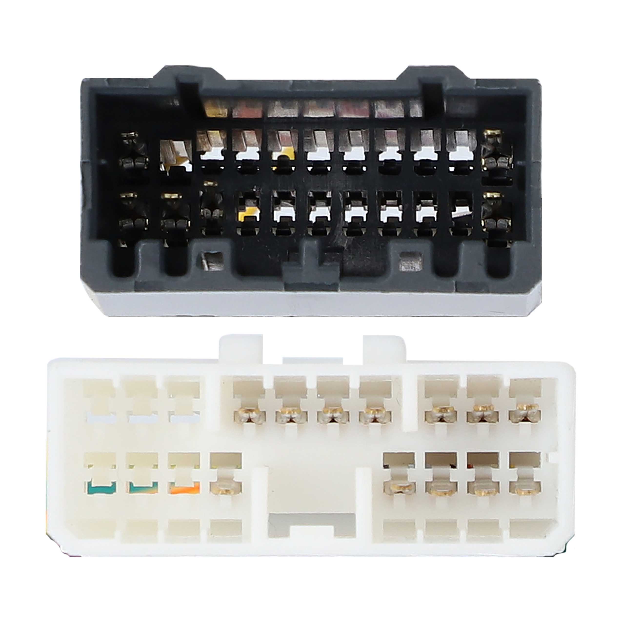Install a new car radio faster with this factory amplifier bypass harness, which plugs directly into the vehicle's connectors and powers the radio. On one side, the wiring harness is color-coded, with wires you'll connect or solder to the aftermarket radio/receiver. The other side has a vehicle-specific adapter that connects directly to the original radio connectors for a quicker installation without cutting each wire.