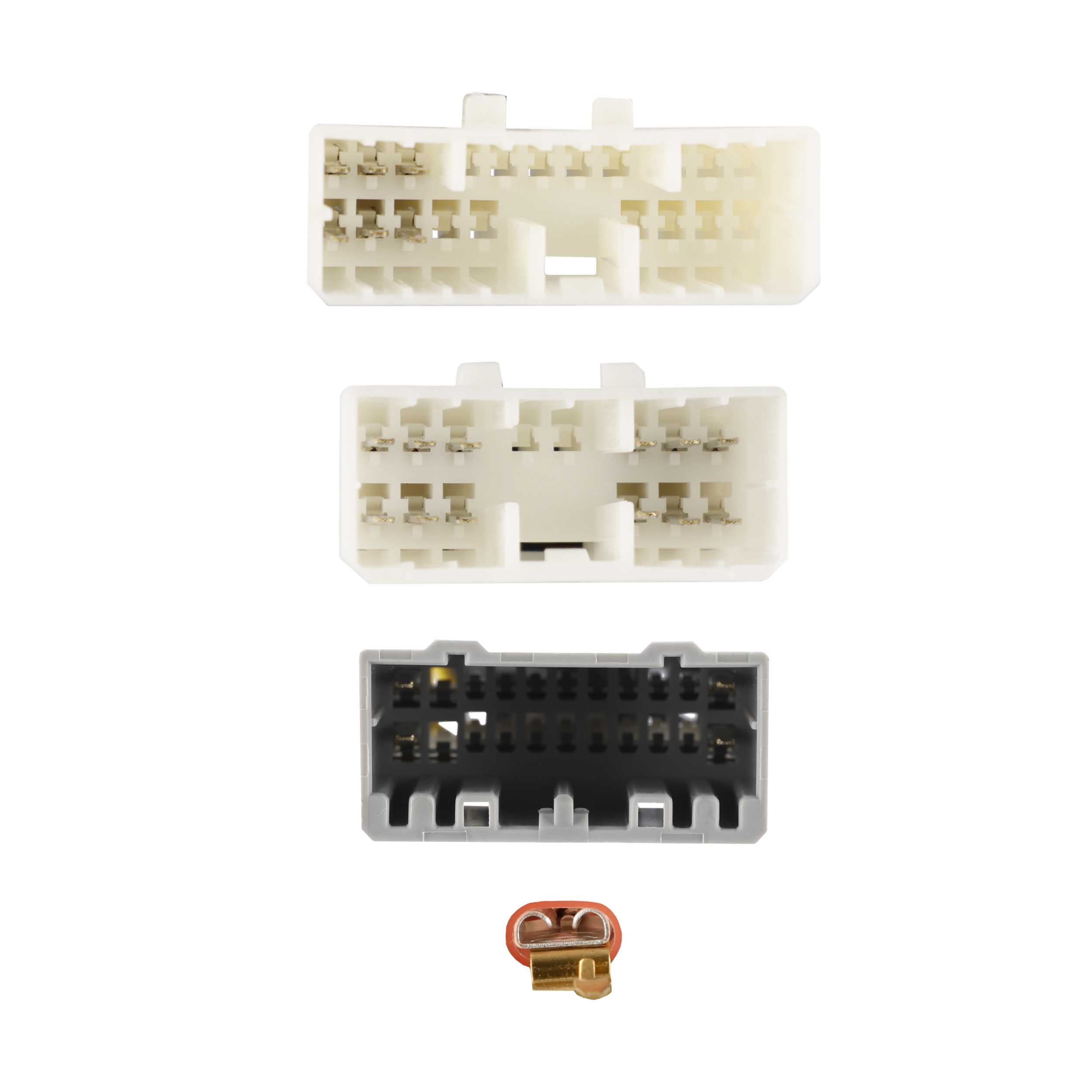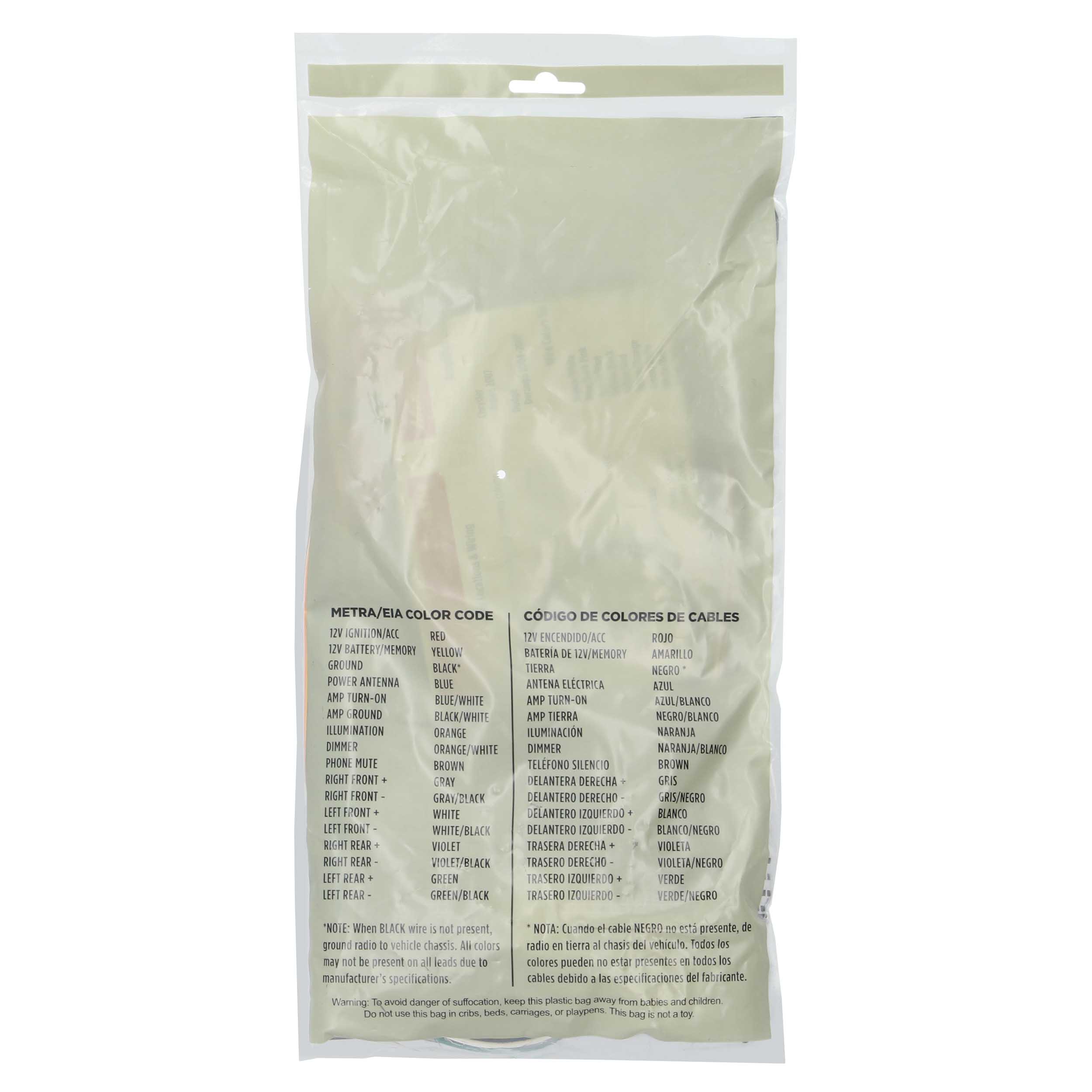 Install a new car radio faster with this factory amplifier bypass harness, which plugs directly into the vehicle's connectors and powers the radio. On one side, the wiring harness is color-coded, with wires you'll connect or solder to the aftermarket radio/receiver. The other side has a vehicle-specific adapter that connects directly to the original radio connectors for a quicker installation without cutting each wire.