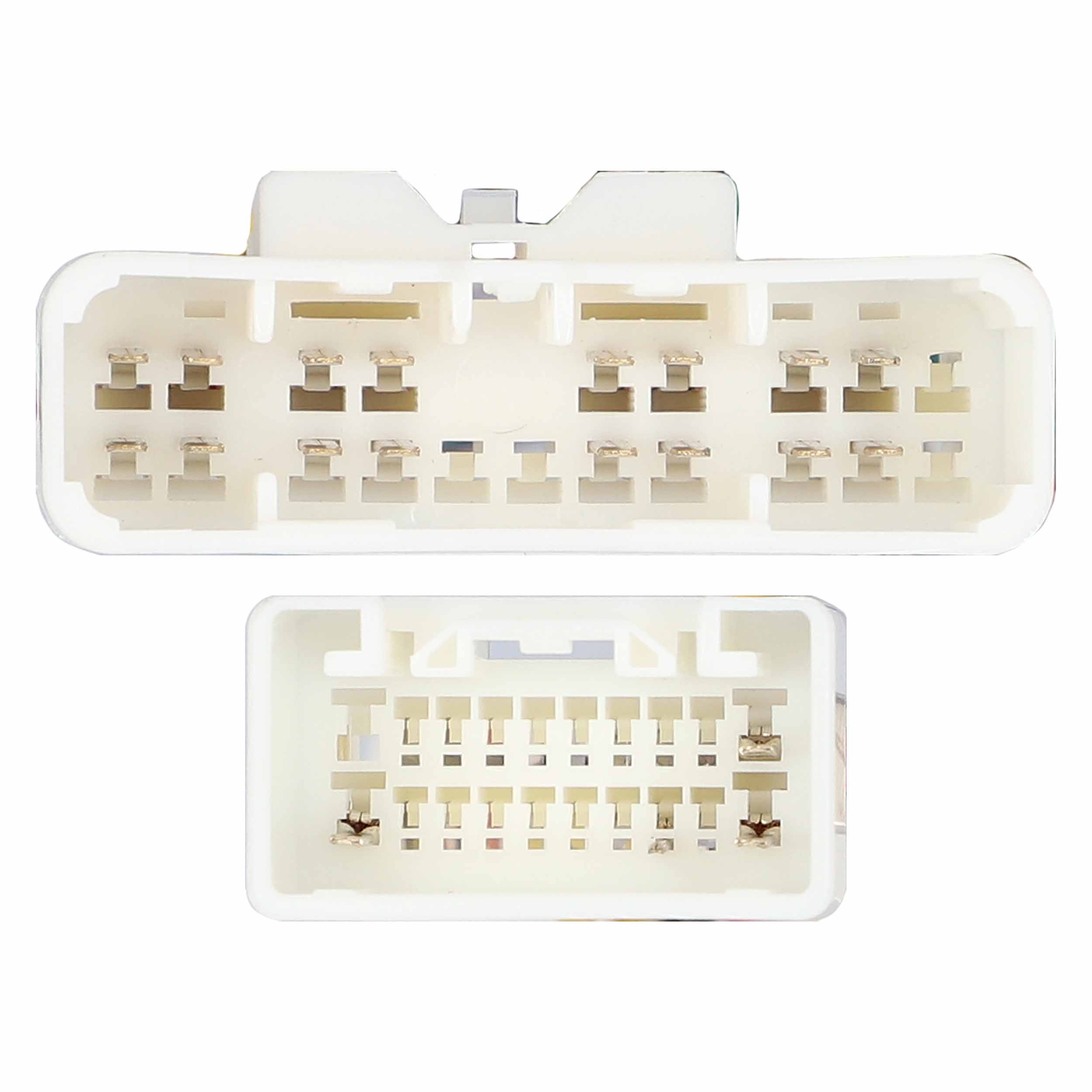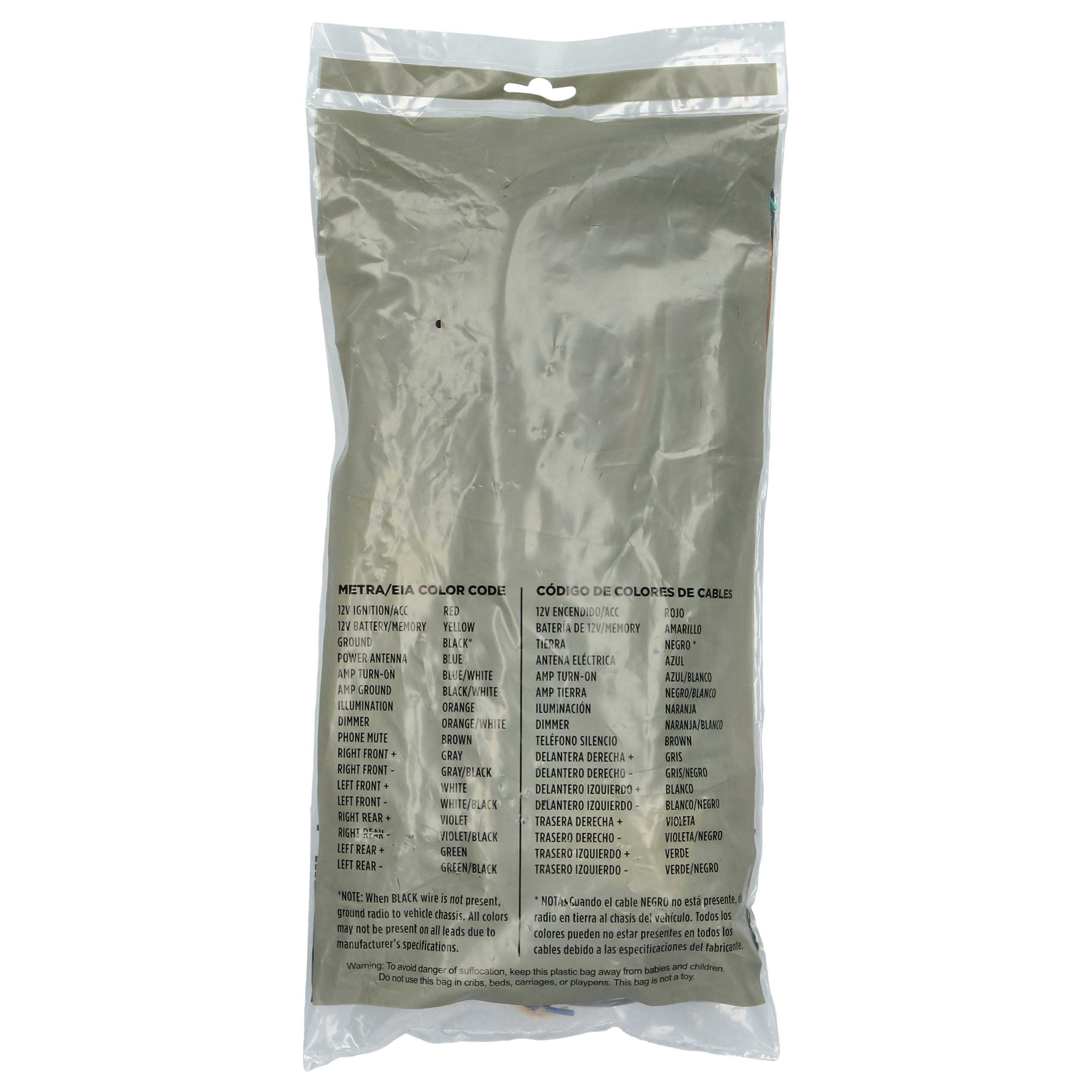 Install a new car radio faster with this factory amplifier bypass harness, which plugs directly into the vehicle's connectors and powers the radio. On one side, the wiring harness is color-coded, with wires you'll connect or solder to the aftermarket radio/receiver. The other side has a vehicle-specific adapter that connects directly to the original radio connectors for a quicker installation without cutting each wire.