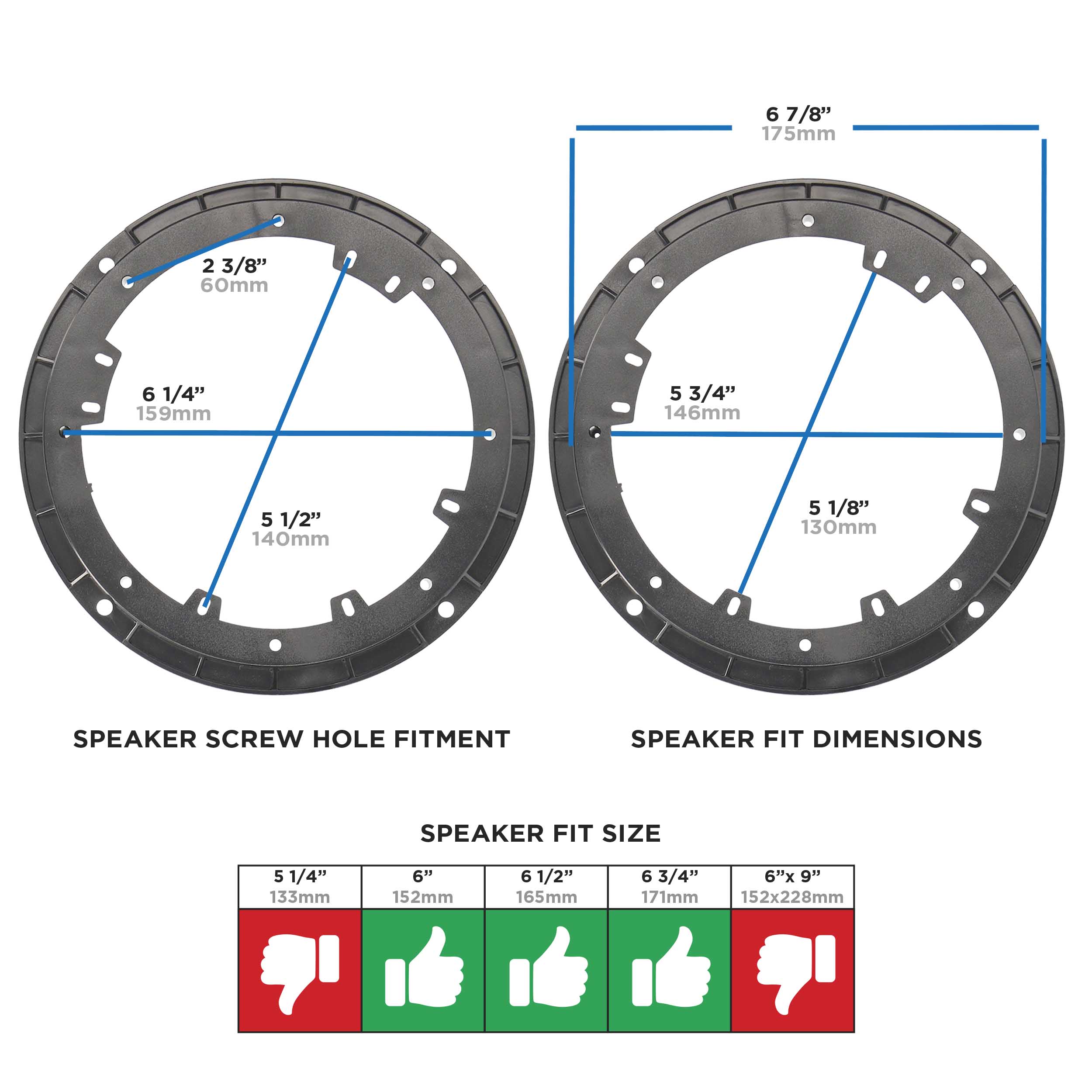 • Accommodates 6" to 6.75" speaker