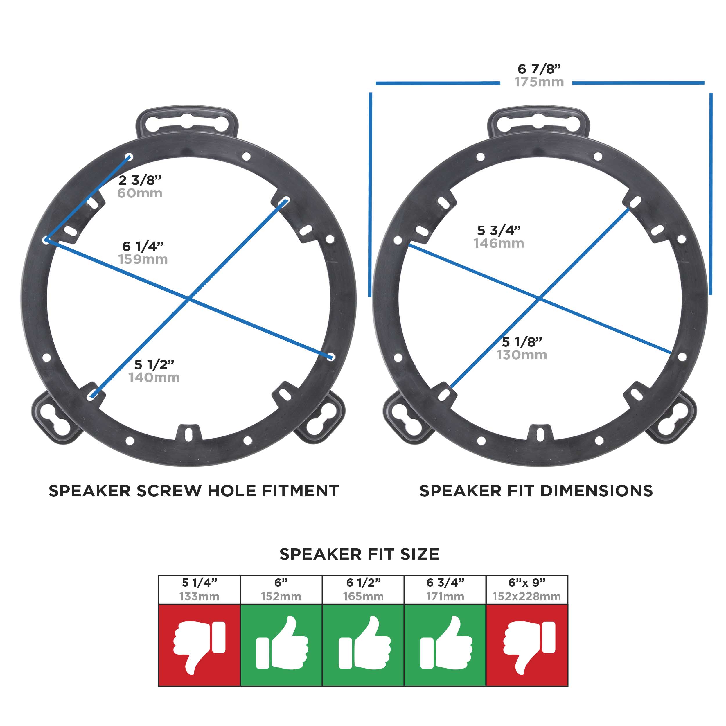 • Break-away tab design allows flexibility for installation of aftermarket 6in to 6 3/4in speakers in the front doors