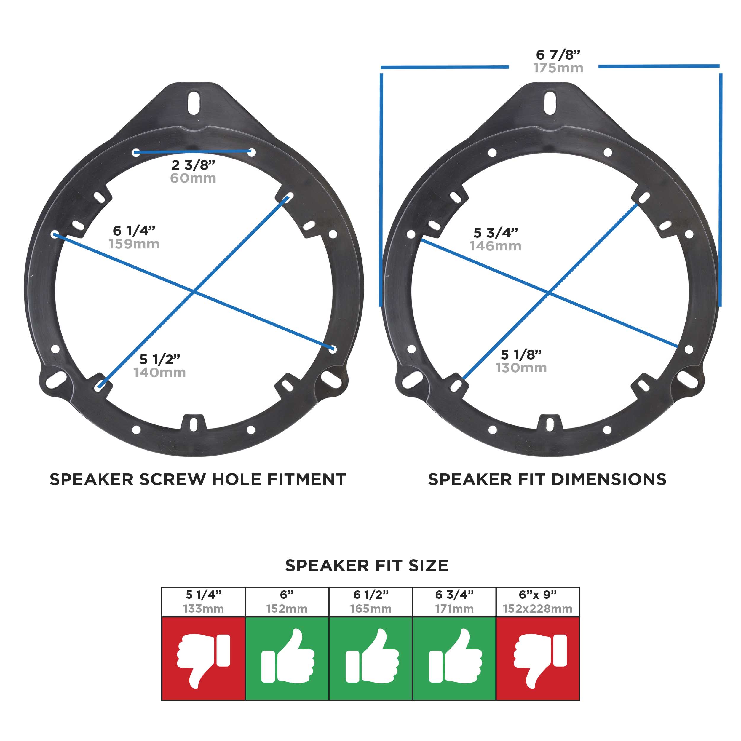 • Break-away tab design allows flexibility for installation of aftermarket 6in to 6 3/4in speakers in the front and rear doors
