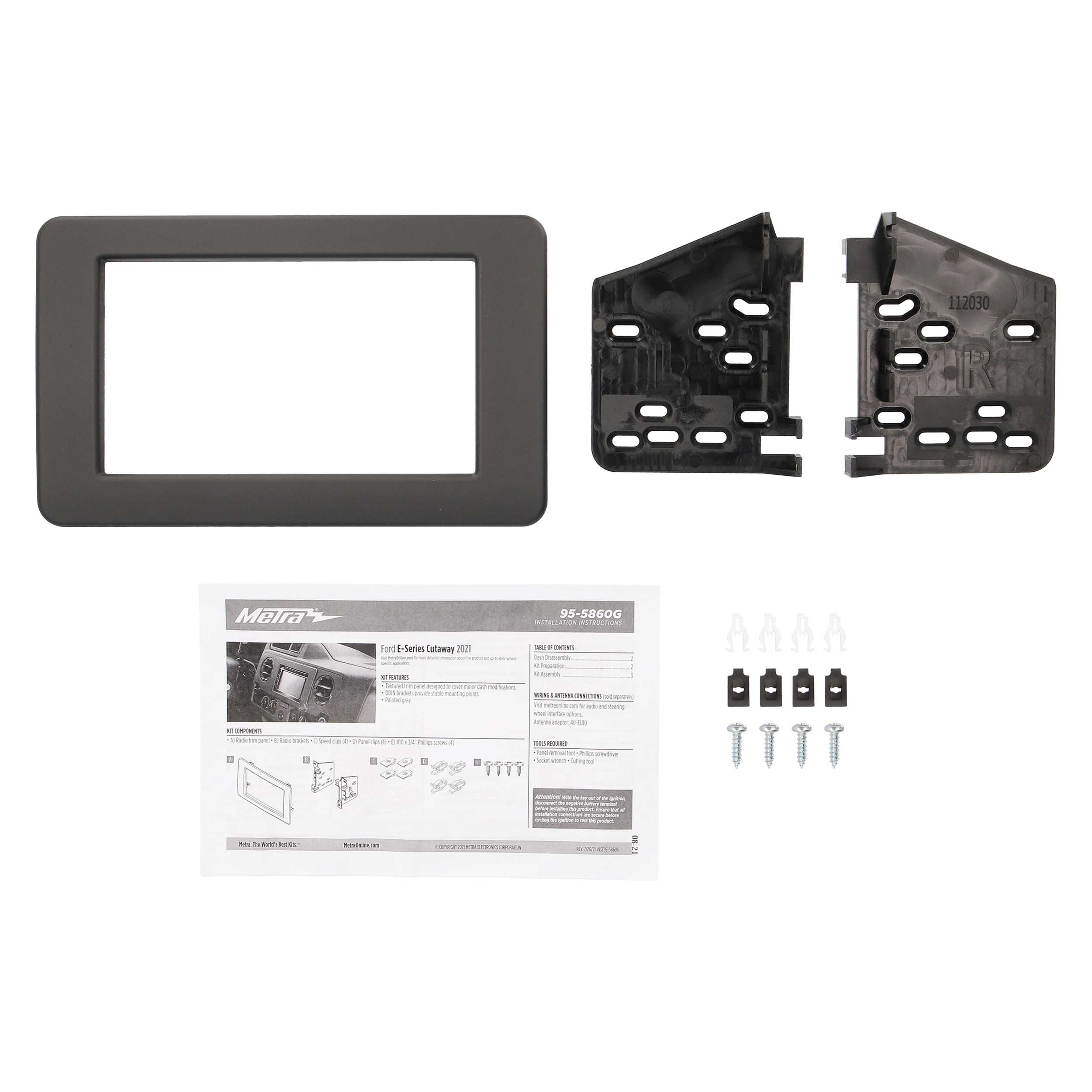 This stereo installation kit has been engineered to help you install a 4” tall (Double-DIN) aftermarket radio into the original vehicle dashboard. This dash kit makes radio replacement easier and is textured and painted gray to match the factory appearance. This kit requires cutting the dashboard to make the larger radio fit and the trim panel covers these minor modifications. Installing an aftermarket radio can upgrade the sound quality and provide additional features the original factory radio couldn’t offer but requires this dash kit to make it fit.