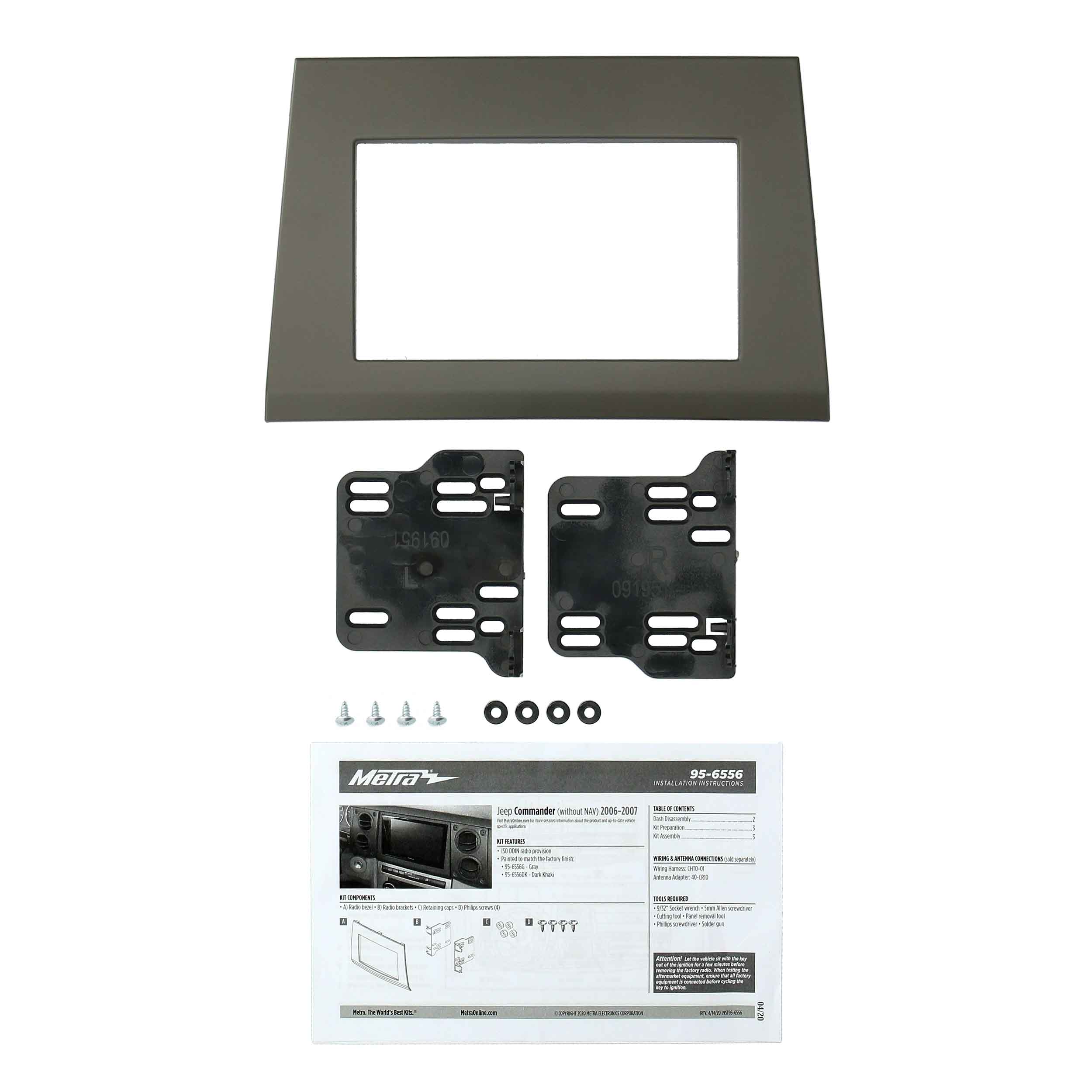 This stereo installation kit is engineered to help you install an aftermarket 4" tall (Double-DIN) radio into the original vehicle dashboard. This dash kit helps make radio replacement easier and is painted dark khaki to match the original look and feel of the vehicle's dashboard. Installing an aftermarket radio can upgrade the sound quality and provide additional features the original factory radio couldn't offer but requires this dash kit to make it fit.