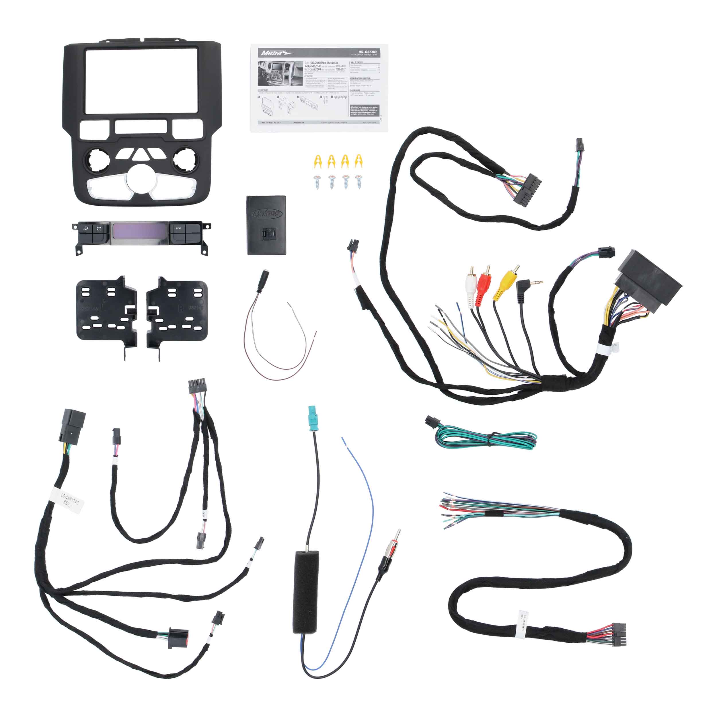 This Metra TurboTactile™ kit features a built-in OLED screen that displays the status of climate functions. Additional factory-style hard buttons have laser-etched graphics for access to vehicle personalization menus. The buttons control features that are normally lost after removing the factory radio. Metra’s built-in patented interface technology retains climate control functions, factory amplifier, and steering wheel control features. TurboTactile kits are painted to match the factory finish and include installation parts for Double-DIN aftermarket radio installations.