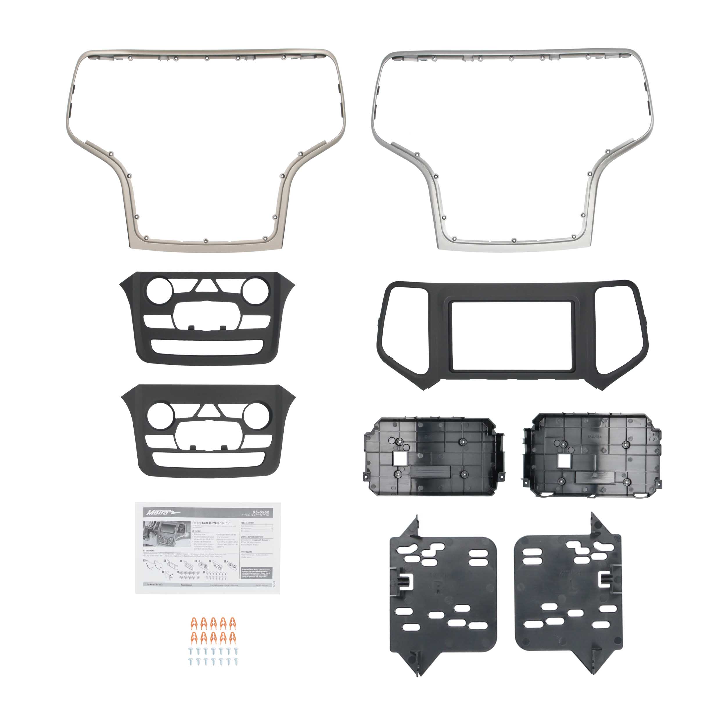 This stereo installation kit is engineered to help you install an aftermarket 4" tall (Double-DIN) radio into the original vehicle’s dashboard. This dash kit makes radio replacement simple and is painted scratch-resistant matte black with included silver and bronze trim options to match the original look and feel of the vehicle's dashboard. Replacing the factory radio not only improves sound quality but can also add modern features the original unit couldn’t provide—and this dash kit ensures the perfect fit.