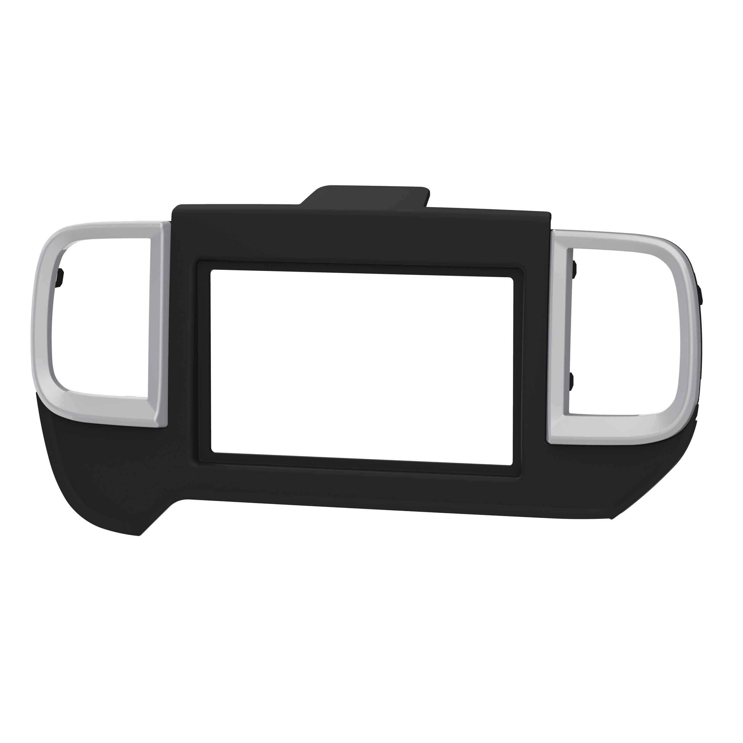 This stereo installation kit is engineered to help you install an aftermarket 4" tall (Double-DIN) radio into the original vehicle dashboard. This dash kit helps make radio replacement easier. It is painted scratch-resistant matte black with separately molded vent trims painted bright silver to match the original look and feel of the vehicle's dashboard. Modifications to the dashboard are required for this installation, and instructions are included. Installing an aftermarket radio can upgrade the sound quality and provide additional features the original factory radio couldn't offer but requires this dash kit to make it fit.