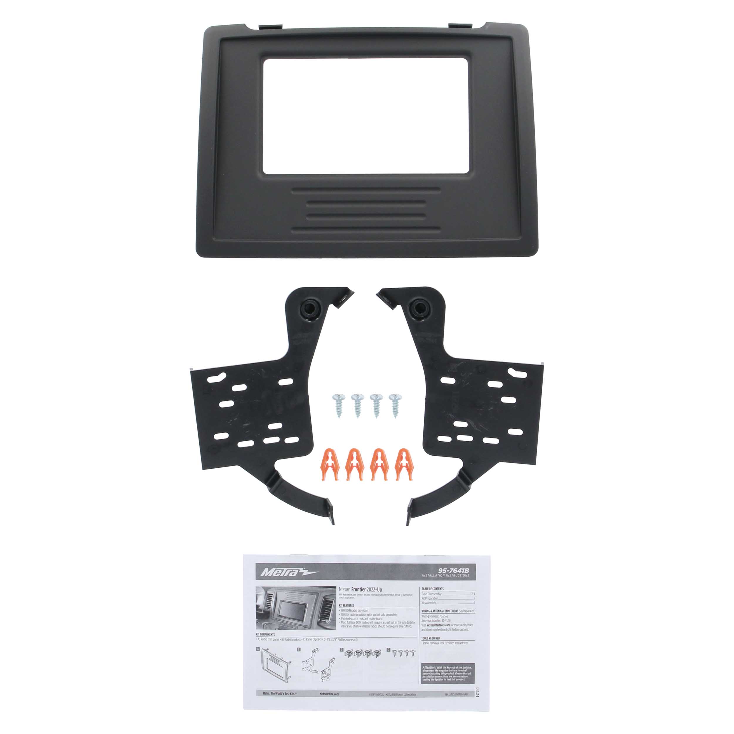 This stereo installation kit is engineered to help you install a shallow-mount radio, an “L” shaped radio with the chassis at the bottom of the screen, or a 4” tall (Double-DIN) aftermarket radio into the original vehicle dashboard. This dash kit helps make radio replacement easier and is painted scratch-resistant matte black to match the original look and feel of the vehicle’s dashboard. Modifications to the sub-dash are required to install a standard Double-DIN radio, and detailed instructions are included. Installing an aftermarket radio can upgrade the sound quality and provide additional features the original factory radio couldn’t offer, but this dash kit is required to make it fit.