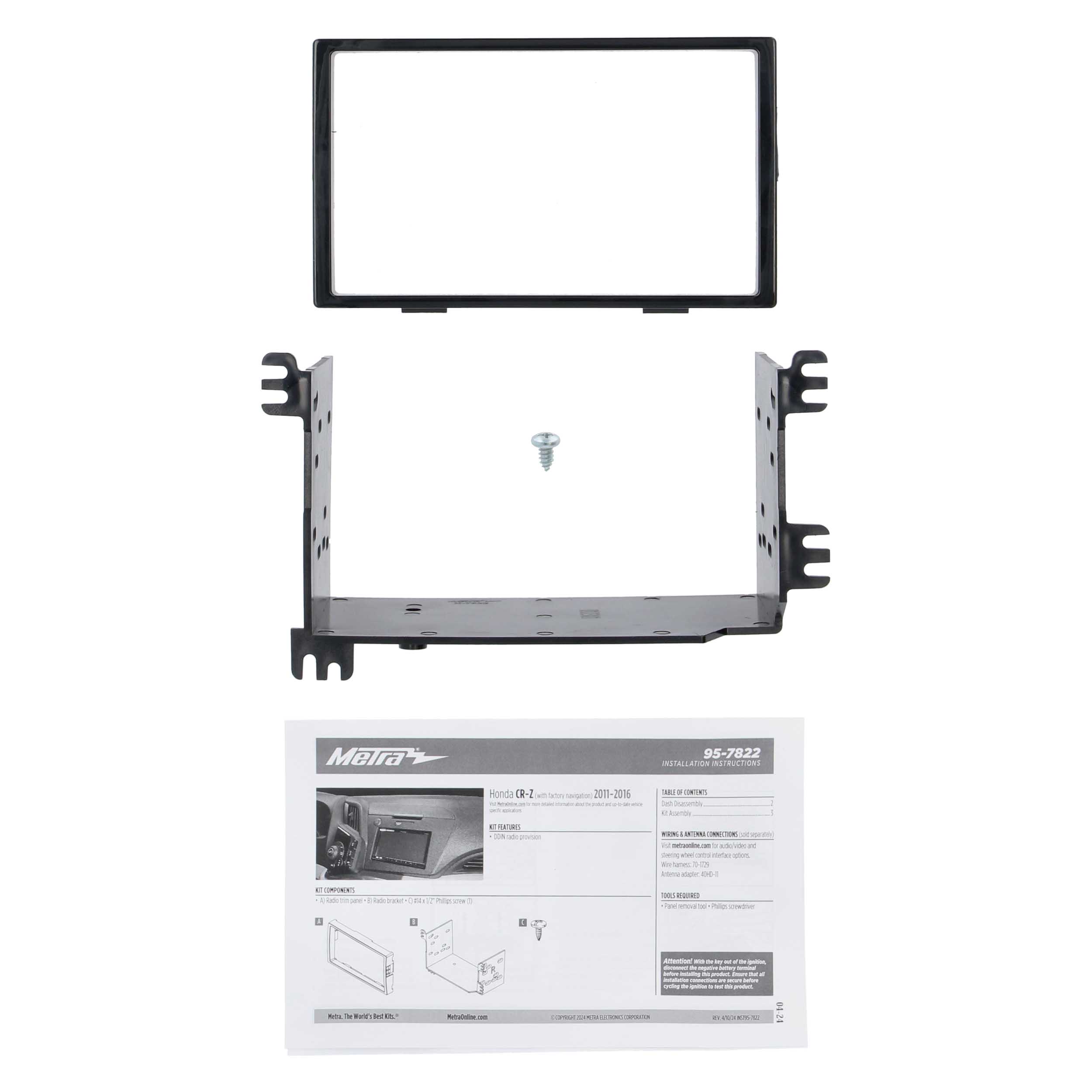 This stereo installation kit is engineered to help you install a 4” tall (Double-DIN) aftermarket radio into the original vehicle dashboard. This dash kit helps make radio replacement simple and is painted scratch-resistant matte black to match the original look and feel of the vehicle’s dashboard. Installing an aftermarket radio can upgrade the sound quality and provide additional features the original factory radio couldn’t offer, but this dash kit is required to make it fit.