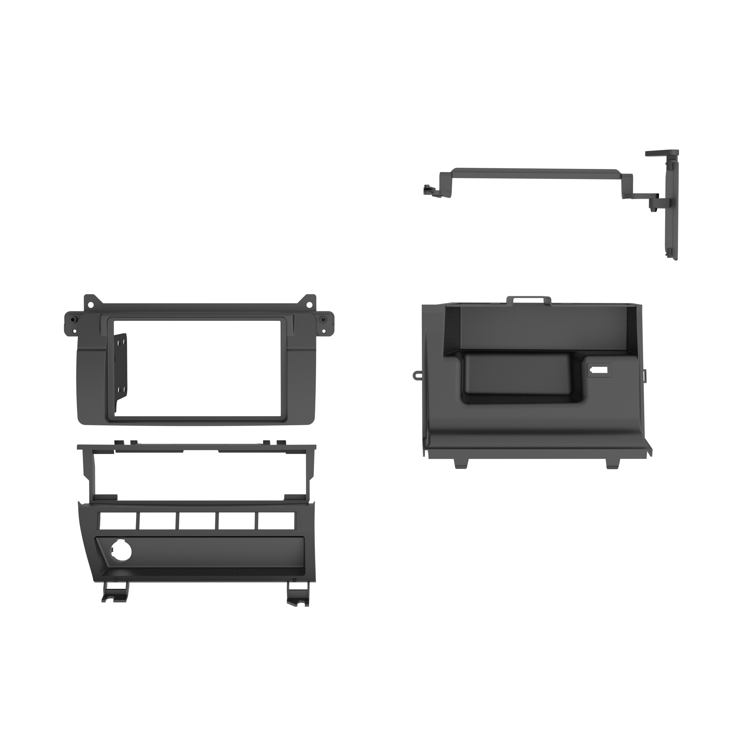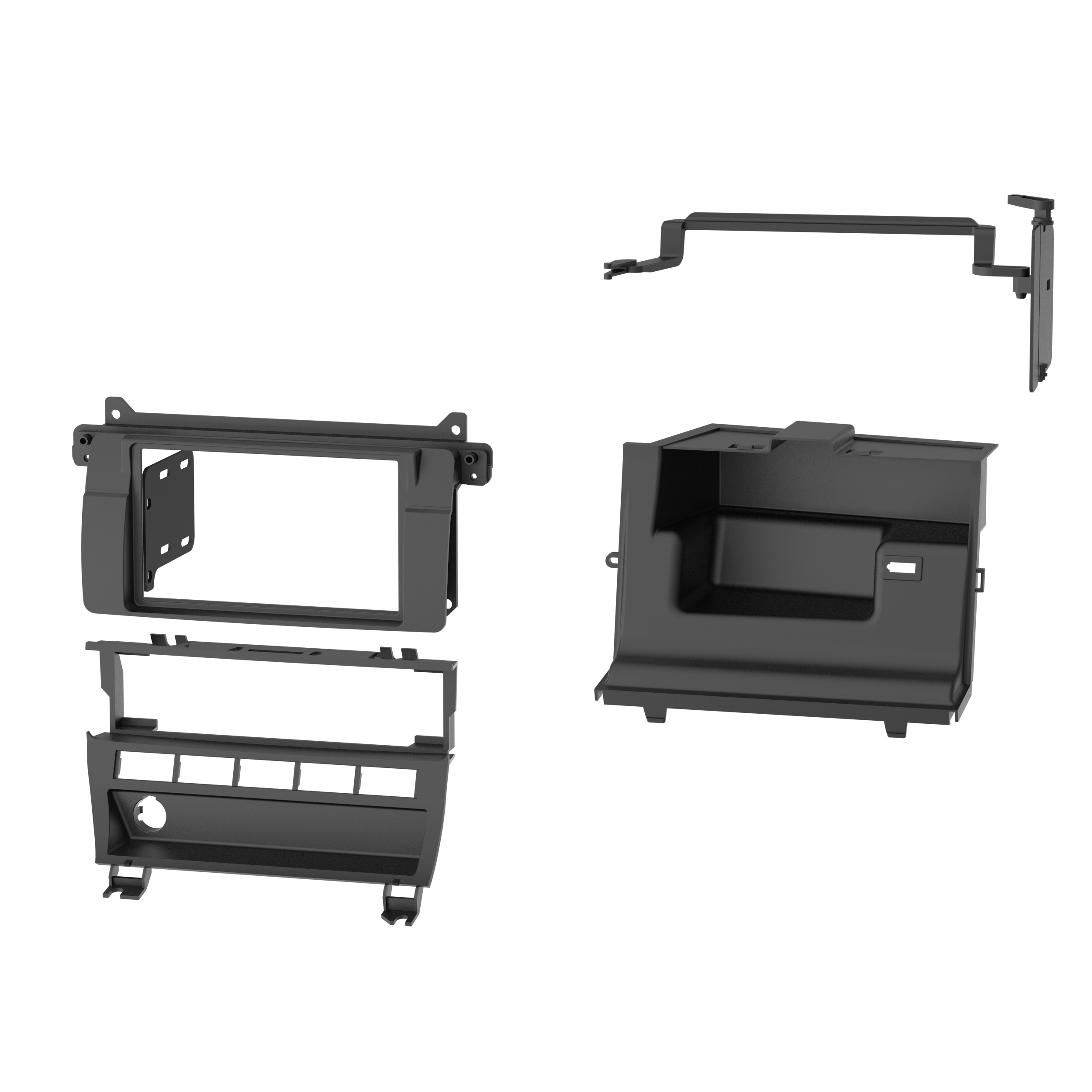 This stereo installation kit is engineered to help you install a 4" tall (Double-DIN) aftermarket radio into the original vehicle dashboard. This dash kit helps make radio replacement easier and is painted scratch-resistant matte black to match the original look and feel of the vehicle's dashboard. For a flush mount of the aftermarket radio, modifications to the factory airbox are required for this installation, and instructions are included. Installing an aftermarket radio can upgrade the sound quality and provide additional features the original factory radio couldn't offer but requires this dash kit to make it fit.