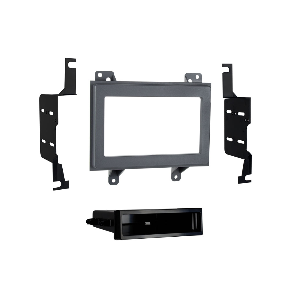 This stereo installation kit has been engineered to help you install either a 2” tall (Single-DIN) or a 4” tall (Double-DIN) aftermarket radio into the original vehicle dashboard. This dash kit makes radio replacement simple and comes with a pocket that is installed below the 2” radio to fill the extra space in the radio opening, which can be used for storage. The pocket is not needed when installing a 4” tall radio. The dash kit is painted gray to match the original look and feel of the vehicle’s dashboard. Installing an aftermarket radio can upgrade the sound quality and provide additional features the original factory radio couldn’t offer but requires this dash kit to make it fit.