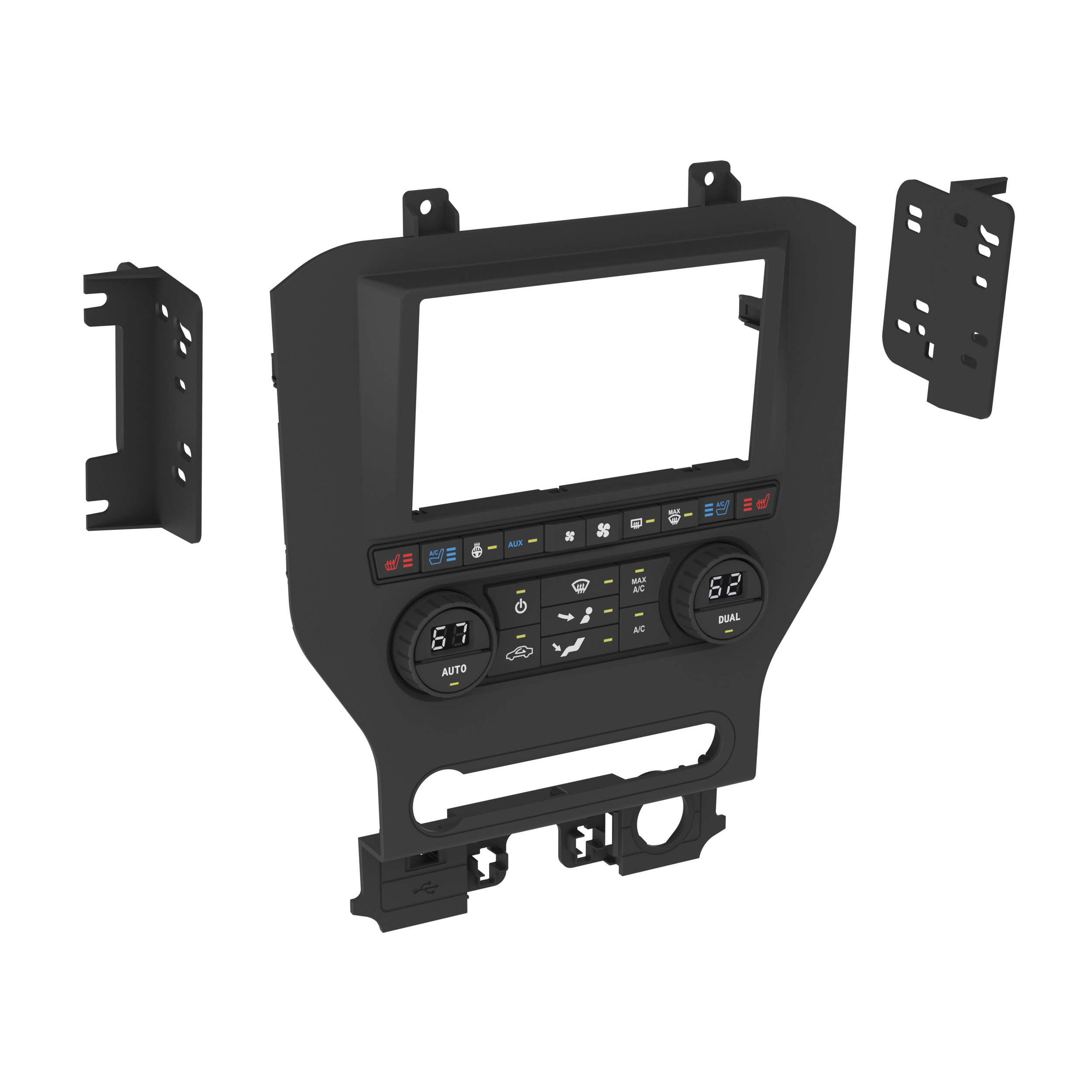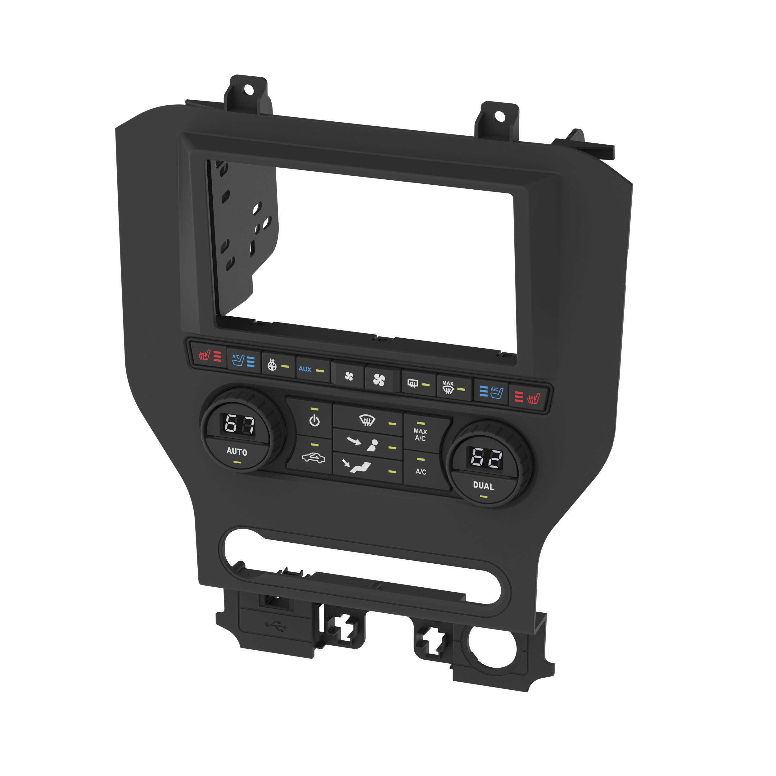 • Factory-style hard buttons with laser-etched graphics to retain and control most climate functions that are normally lost when removing the factory radio