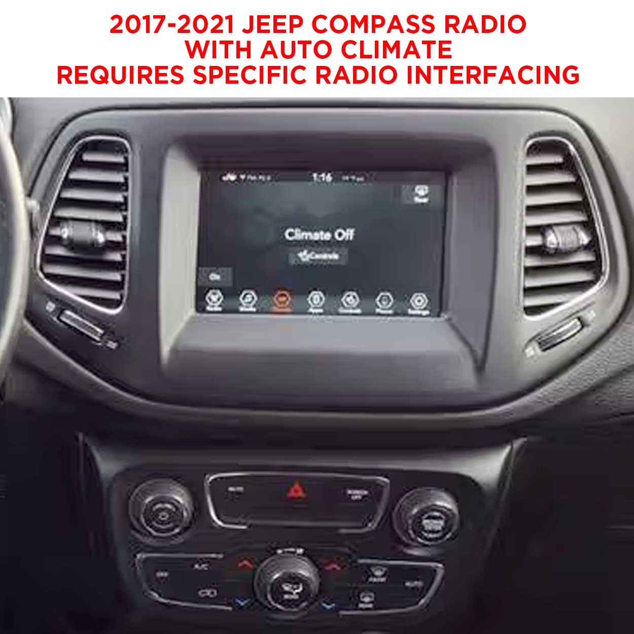 Note: Auto climate control vehicles will require specific radio interfacing for retention of climate and personalization features