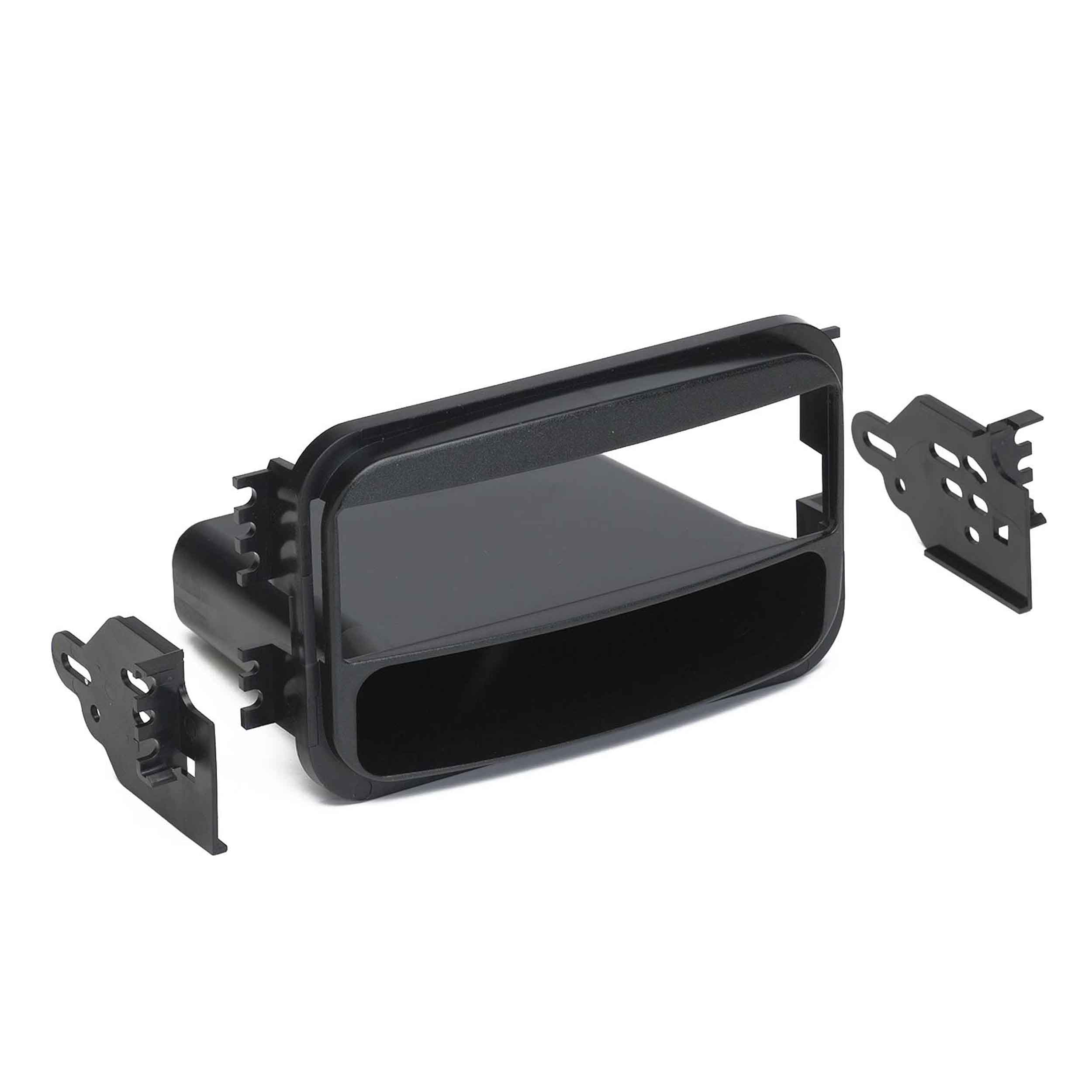 This stereo installation kit has been engineered to help you install a 2” tall (Single-DIN) aftermarket radio into the original vehicle dashboard. This dash kit makes radio replacement simple and comes with a built-in pocket that is located below the 2” radio to fill the extra space in the radio opening, which can be used for storage. The dash kit is contoured to match the original look and feel of the vehicle’s dashboard. Installing an aftermarket radio can upgrade the sound quality and provide additional features the original factory radio couldn’t offer but requires this dash kit to make it fit.