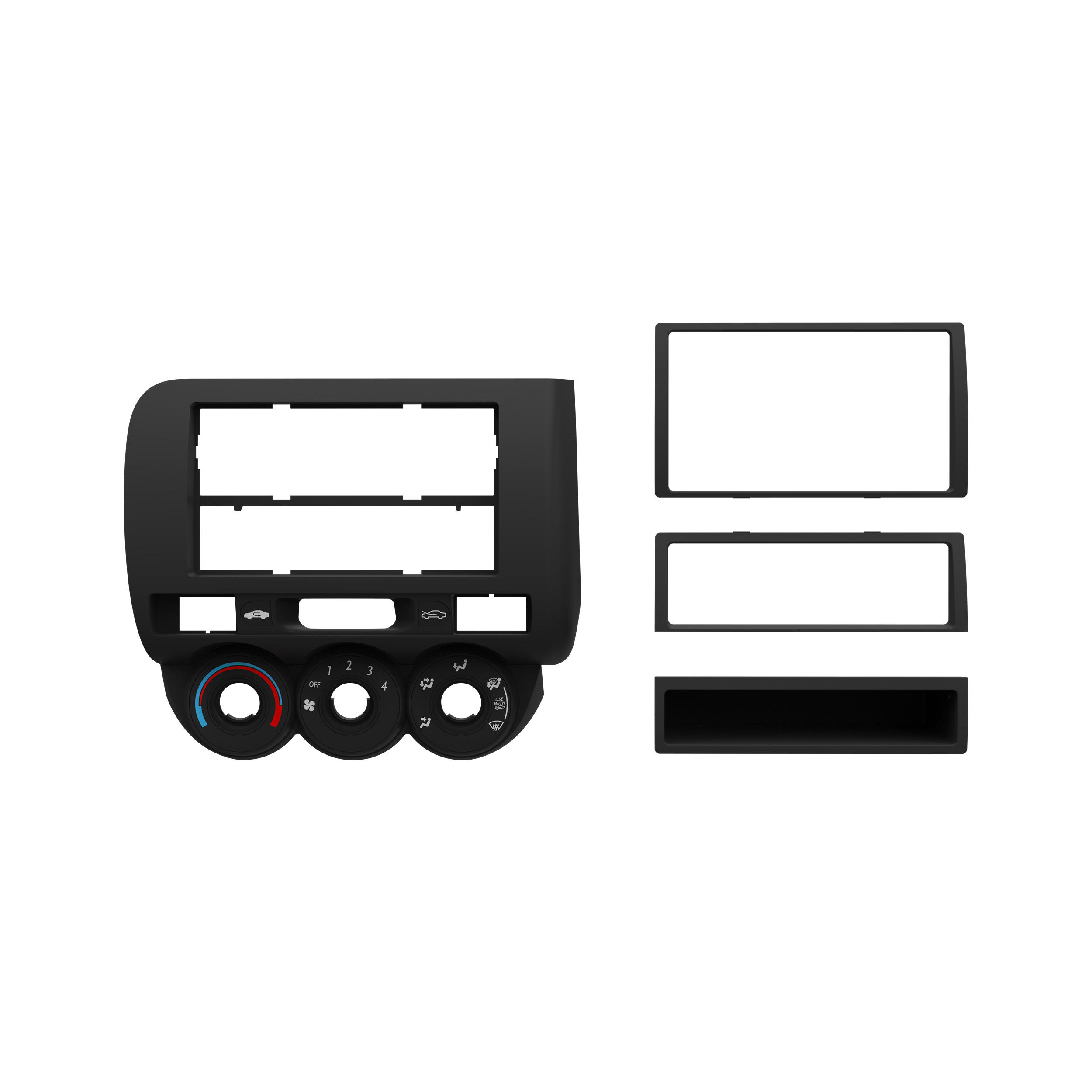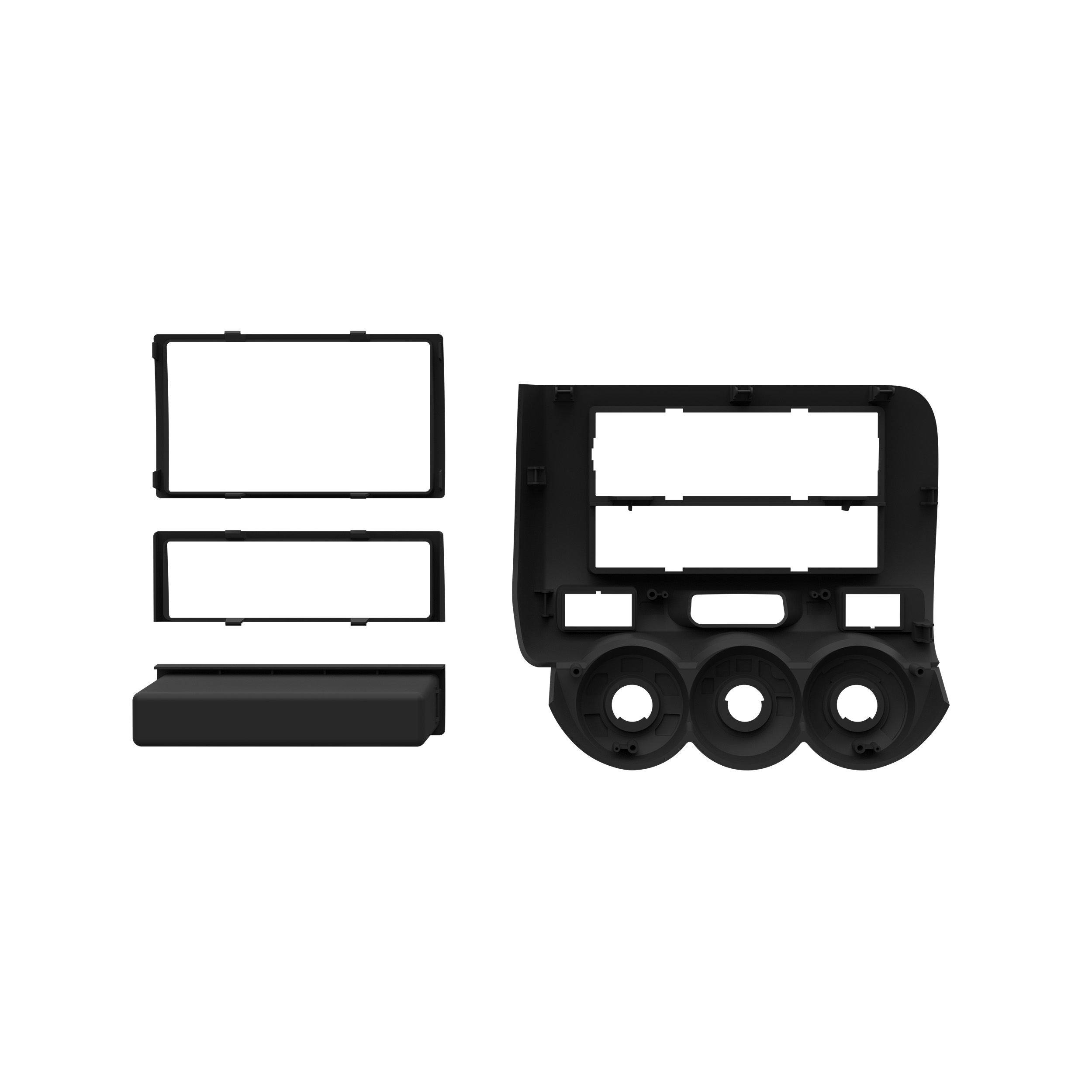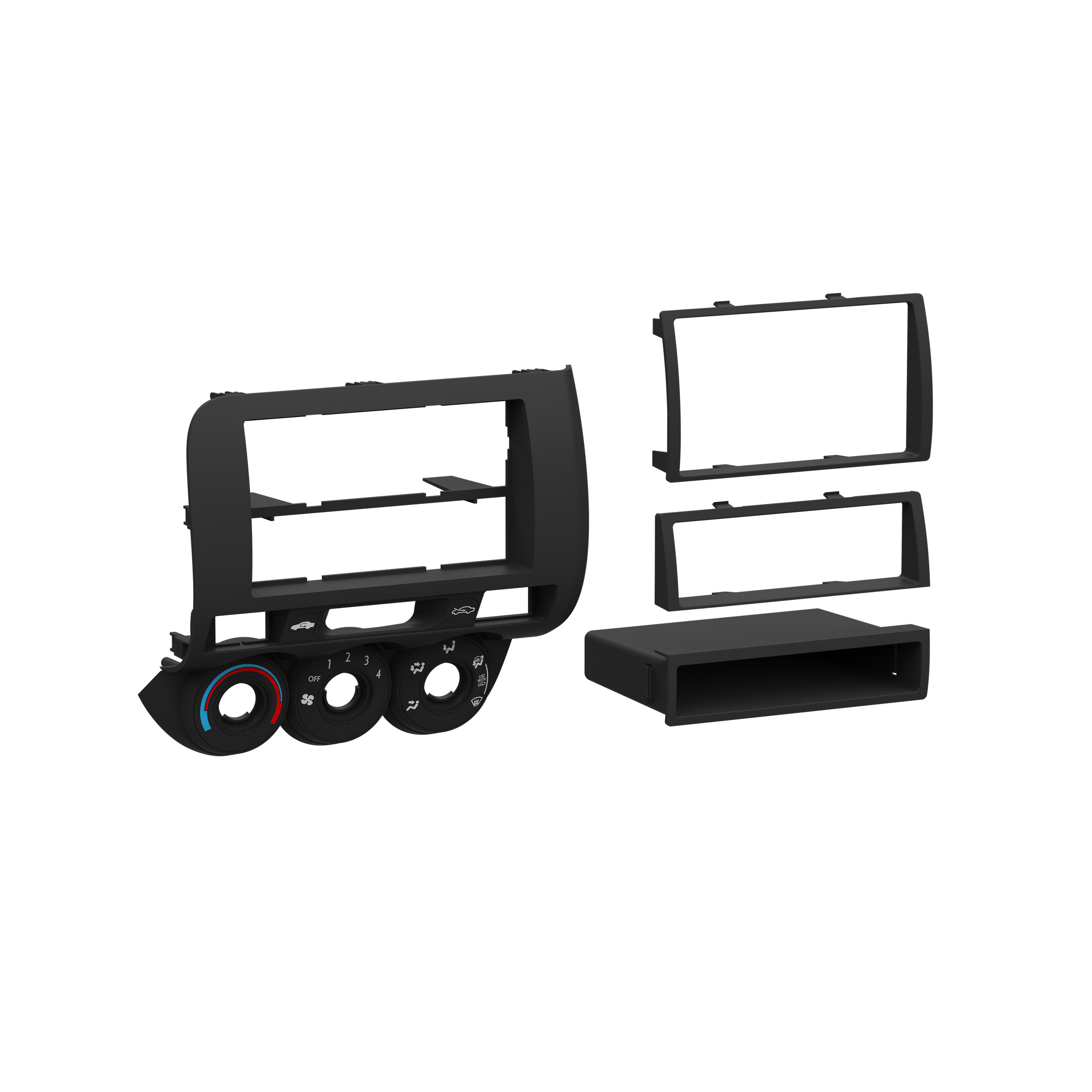 This stereo installation kit has been engineered to help you install either a 2” tall (Single-DIN) or a 4” tall (Double-DIN) aftermarket radio into the original vehicle dashboard. This dash kit makes radio replacement simple and comes with a pocket that is installed below the 2” radio to fill the extra space in the radio opening, which can be used for storage. The pocket is not needed when installing a 4” tall radio. The dash kit is painted matte graphite gray to match the original look and feel of the vehicle’s dashboard. Installing an aftermarket radio can upgrade the sound quality and provide additional features the original factory radio couldn’t offer but requires this dash kit to make it fit.