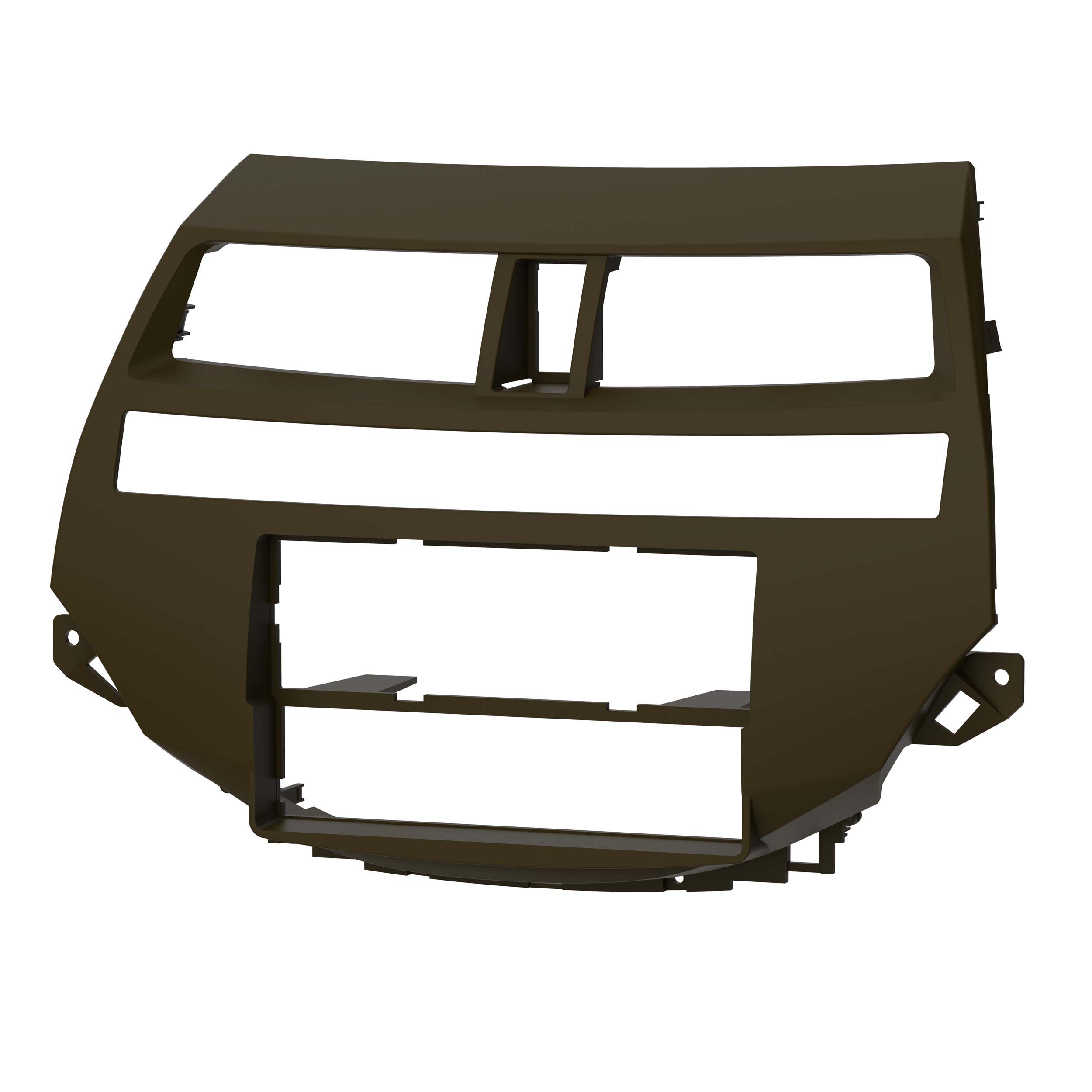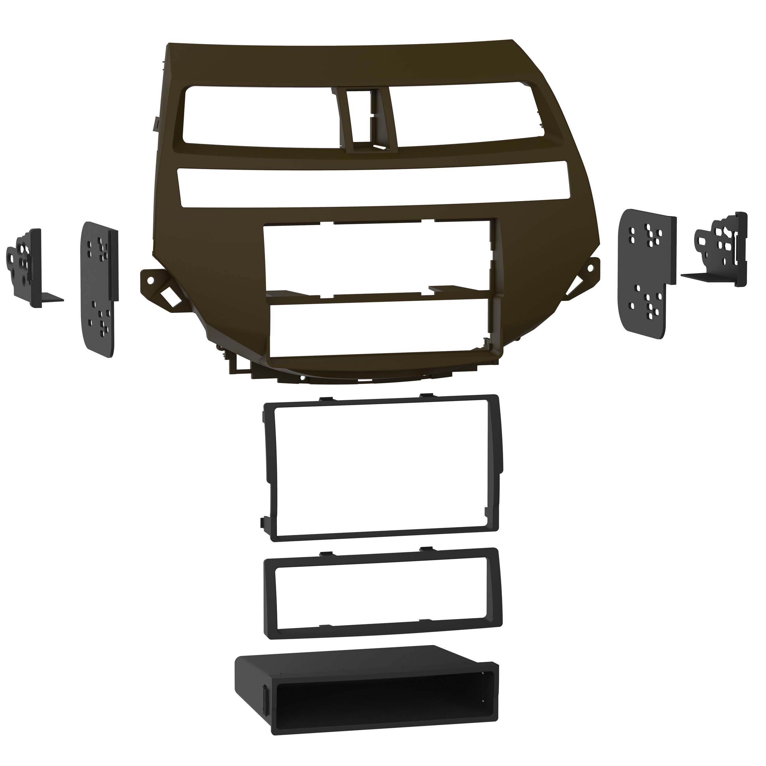 This stereo installation kit has been engineered to help you install either a 2” tall (Single-DIN) or a 4” tall (Double-DIN) aftermarket radio into the original vehicle dashboard. This dash kit makes radio replacement simple and comes with a pocket that is installed below the 2” radio to fill the extra space in the radio opening, which can be used for storage. The pocket is not needed when installing a 4” tall radio. The dash kit is painted taupe to match the original look and feel of the vehicle’s dashboard. Installing an aftermarket radio can upgrade the sound quality and provide additional features the original factory radio couldn’t offer but requires this dash kit to make it fit.