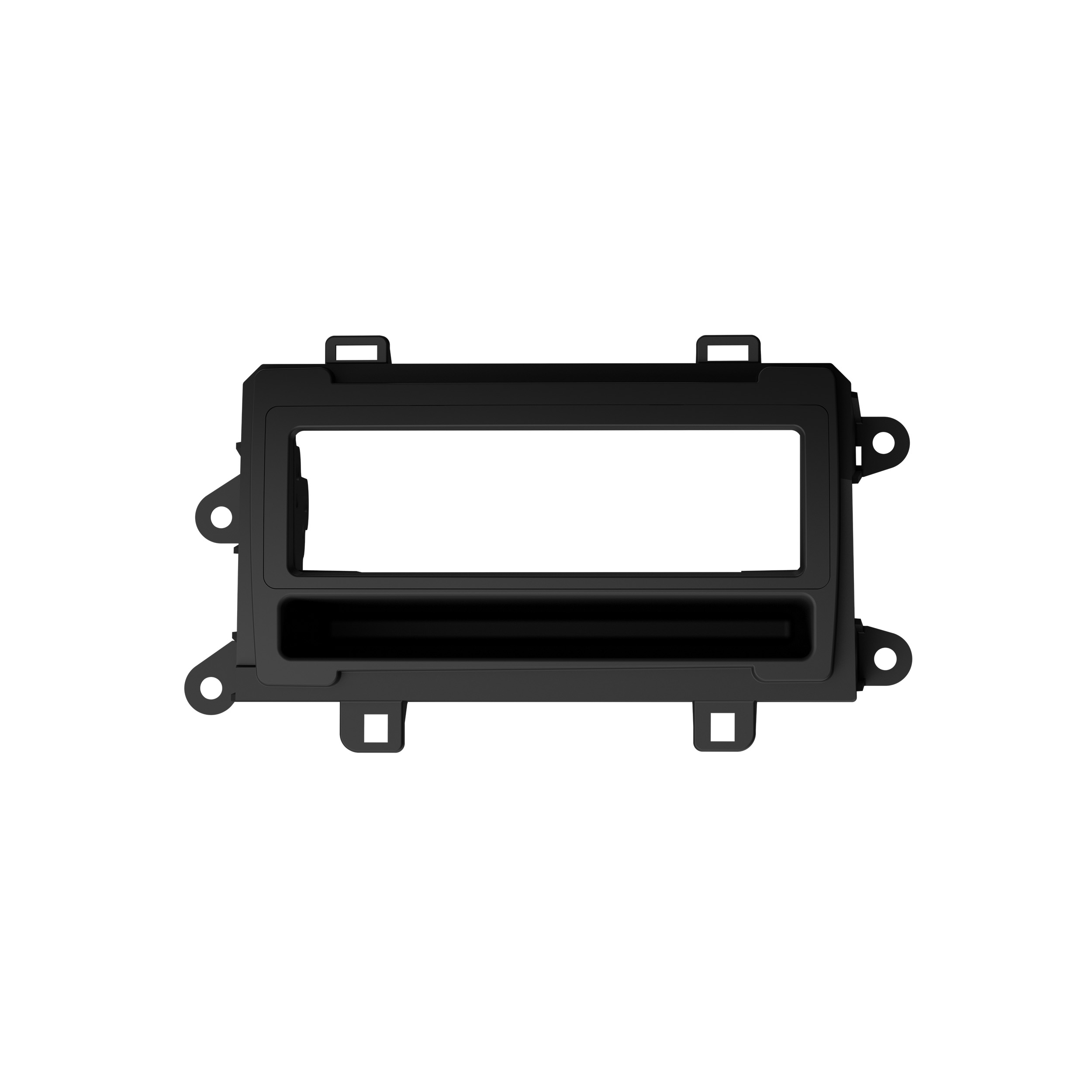 This stereo installation kit has been engineered to help you install a 2” tall (Single-DIN) aftermarket radio into the original vehicle dashboard. This dash kit makes radio replacement simple and comes with a built-in pocket that is located below the 2” radio to fill the extra space in the radio opening, which can be used for storage. The dash kit is painted scratch-resistant matte black to match the original look and feel of the vehicle’s dashboard. Installing an aftermarket radio can upgrade the sound quality and provide additional features the original factory radio couldn’t offer but requires this dash kit to make it fit.