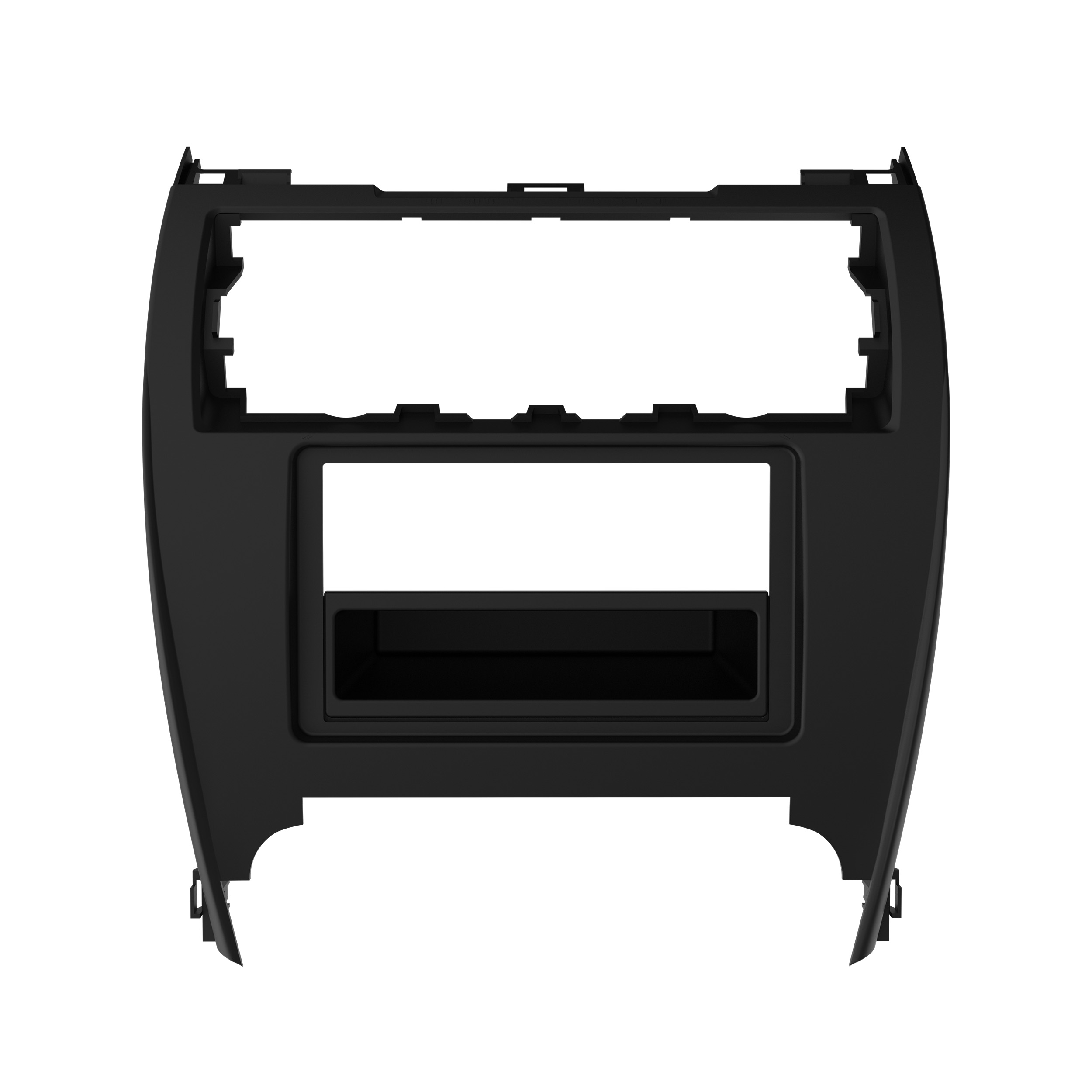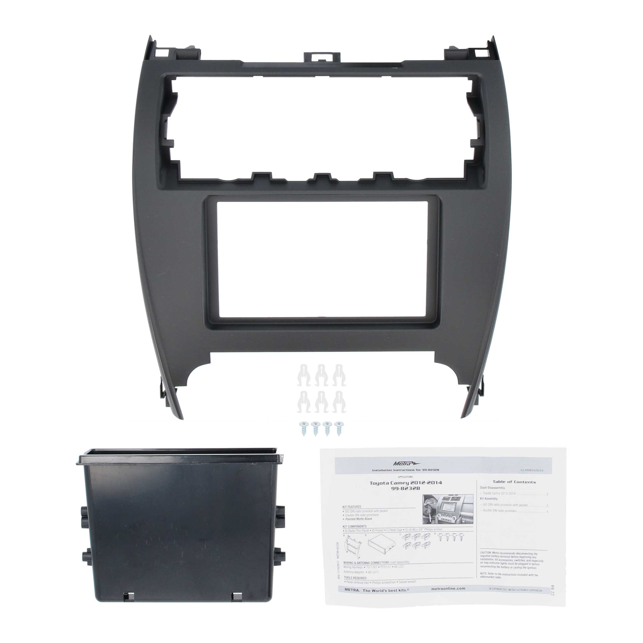 This stereo installation kit has been engineered to help you install either a 2” tall (Single-DIN) or a 4” tall (Double-DIN) aftermarket radio into the original vehicle dashboard. This dash kit makes radio replacement simple and comes with a pocket that is installed below the 2” radio to fill the extra space in the radio opening, which can be used for storage. The pocket is not needed when installing a 4” tall radio. The dash kit is painted scratch-resistant matte black to match the original look and feel of the vehicle’s dashboard. Installing an aftermarket radio can upgrade the sound quality and provide additional features the original factory radio couldn’t offer but requires this dash kit to make it fit.
