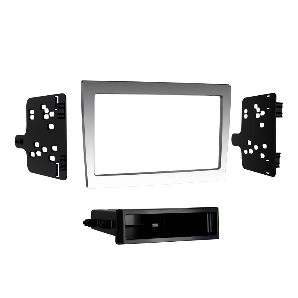 This stereo installation kit has been engineered to help you install either a 2” tall (Single-DIN) or a 4” tall (Double-DIN) aftermarket radio into the original vehicle dashboard. This dash kit makes radio replacement simple and comes with a pocket that is installed below the 2” radio to fill the extra space in the radio opening, which can be used for storage. The pocket is not needed when installing a 4” tall radio. The dash kit is painted gray to match the original look and feel of the vehicle’s dashboard. Installing an aftermarket radio can upgrade the sound quality and provide additional features the original factory radio couldn’t offer but requires this dash kit to make it fit.