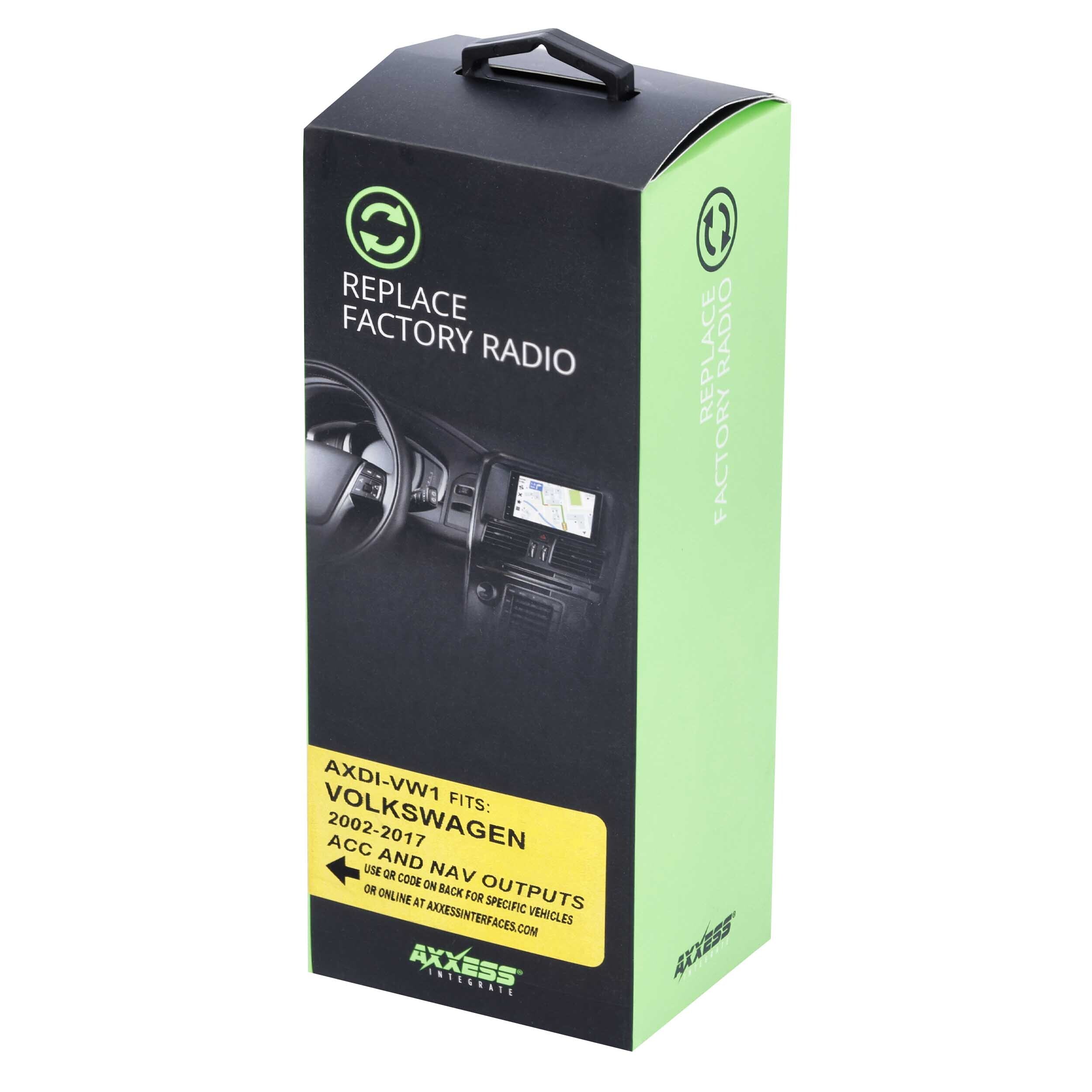 The AXDI data interface provides everything you will need to retain certain features of your vehicle that are typically lost when replacing your factory radio, such as blind spot detection or chimes, if your vehicle is equipped. The AXDI interface also comes pre-wired with the required harnessing to retain steering wheel controls if your vehicle is equipped. Please note that if your vehicle is equipped with steering wheel controls and you wish to retain this feature, the required Axxess steering wheel control interface must be purchased separately. Don't forget to check our Vehicle Fit Guide to see if the AXDI is compatible with your vehicle, as this product is dependent on the vehicle application.