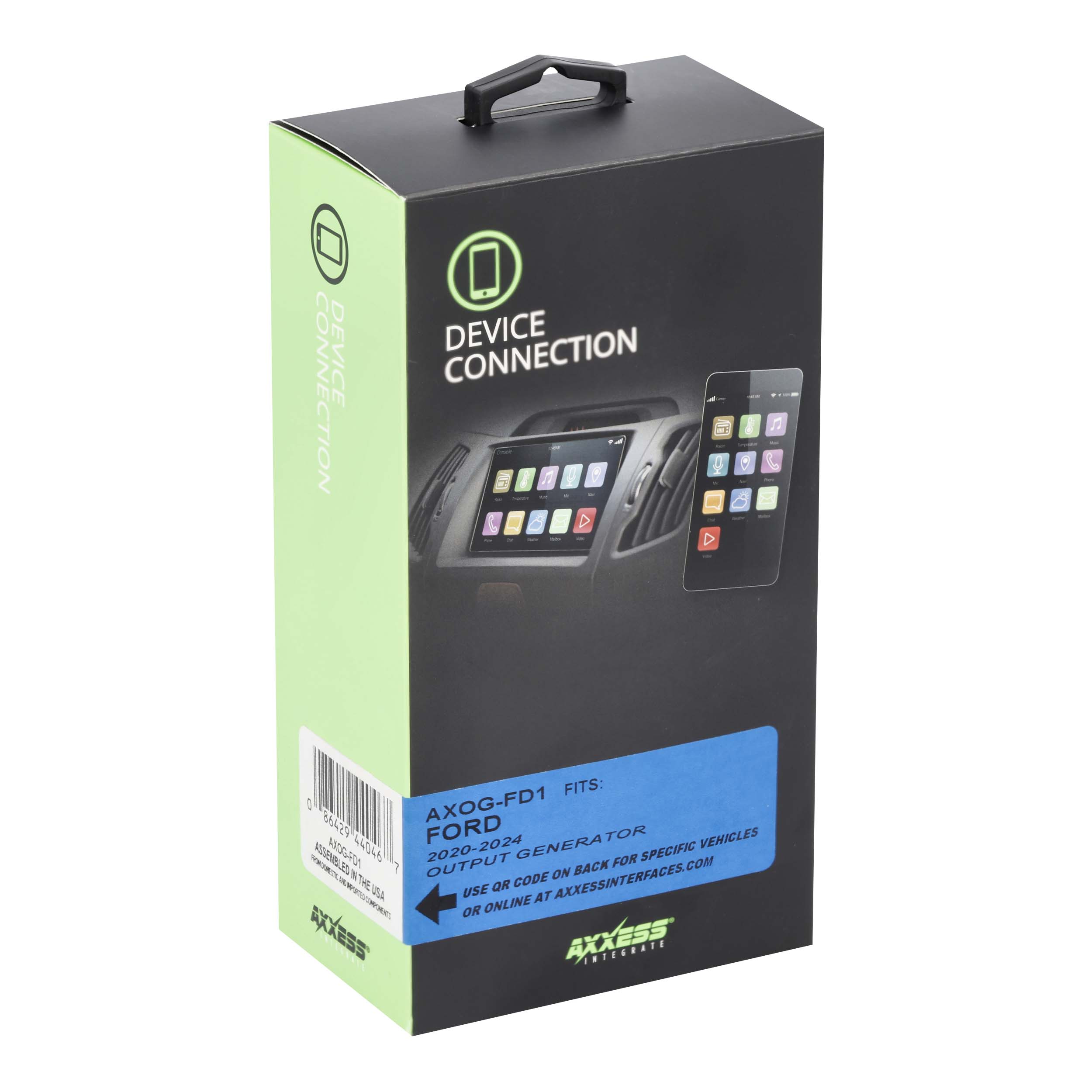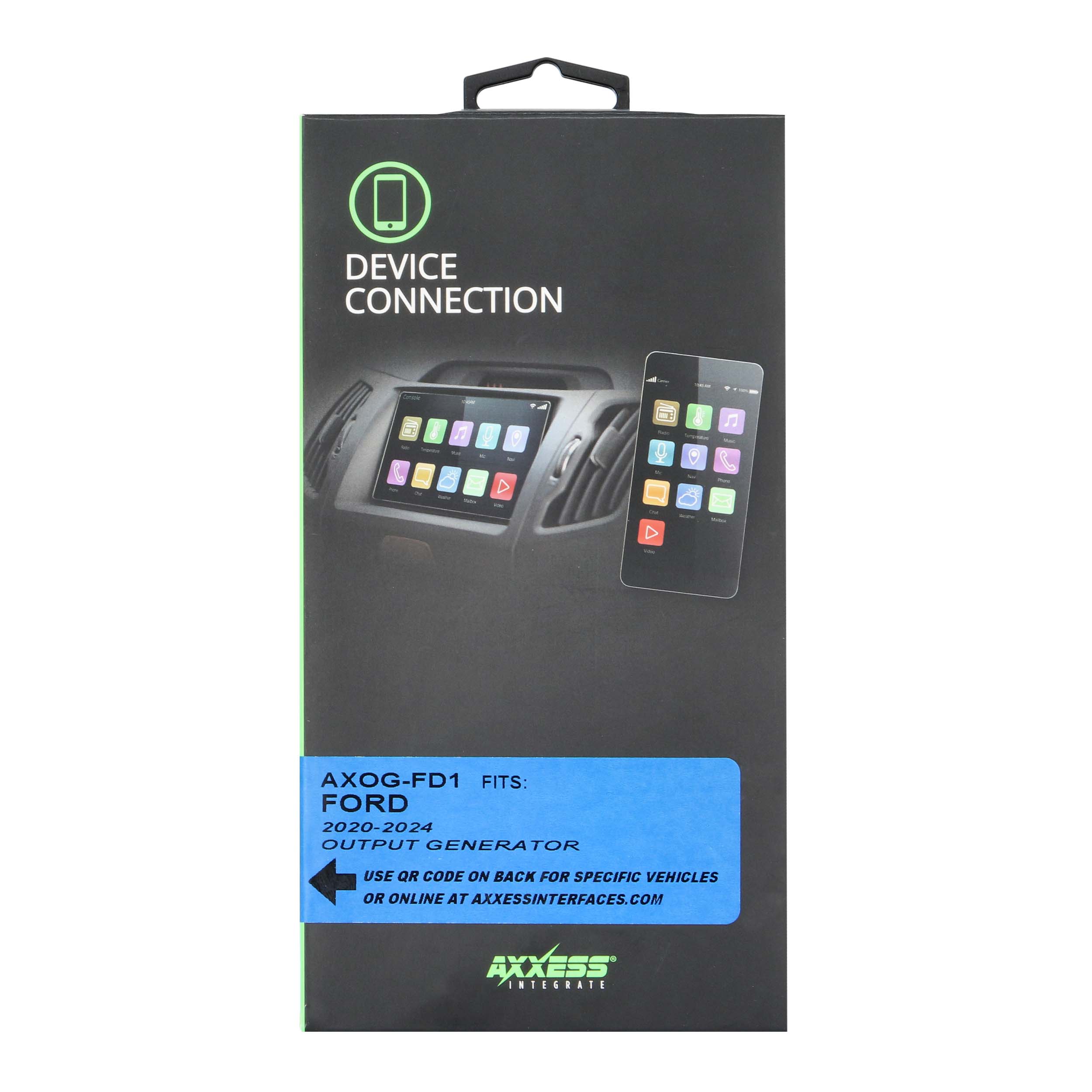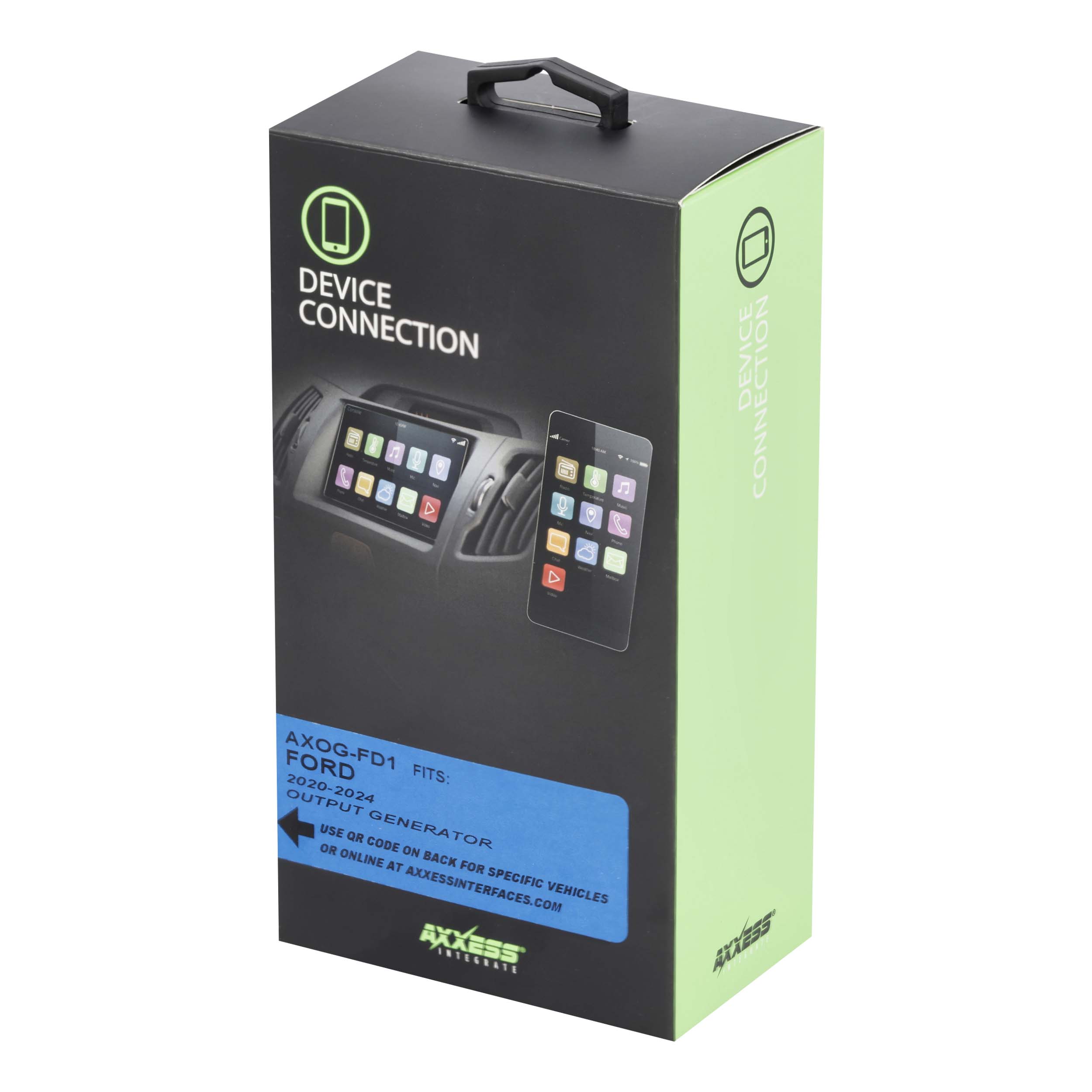 Add up to eight accessory outputs to power your radar detector, aftermarket backup camera, or other devices with this output generator. This product is designed to fit 2020-2022 Ford vehicles and is easy to install with plug-n-play wiring. Outputs can be remotely configured using the free downloadable Axxess Updater app for Windows®.