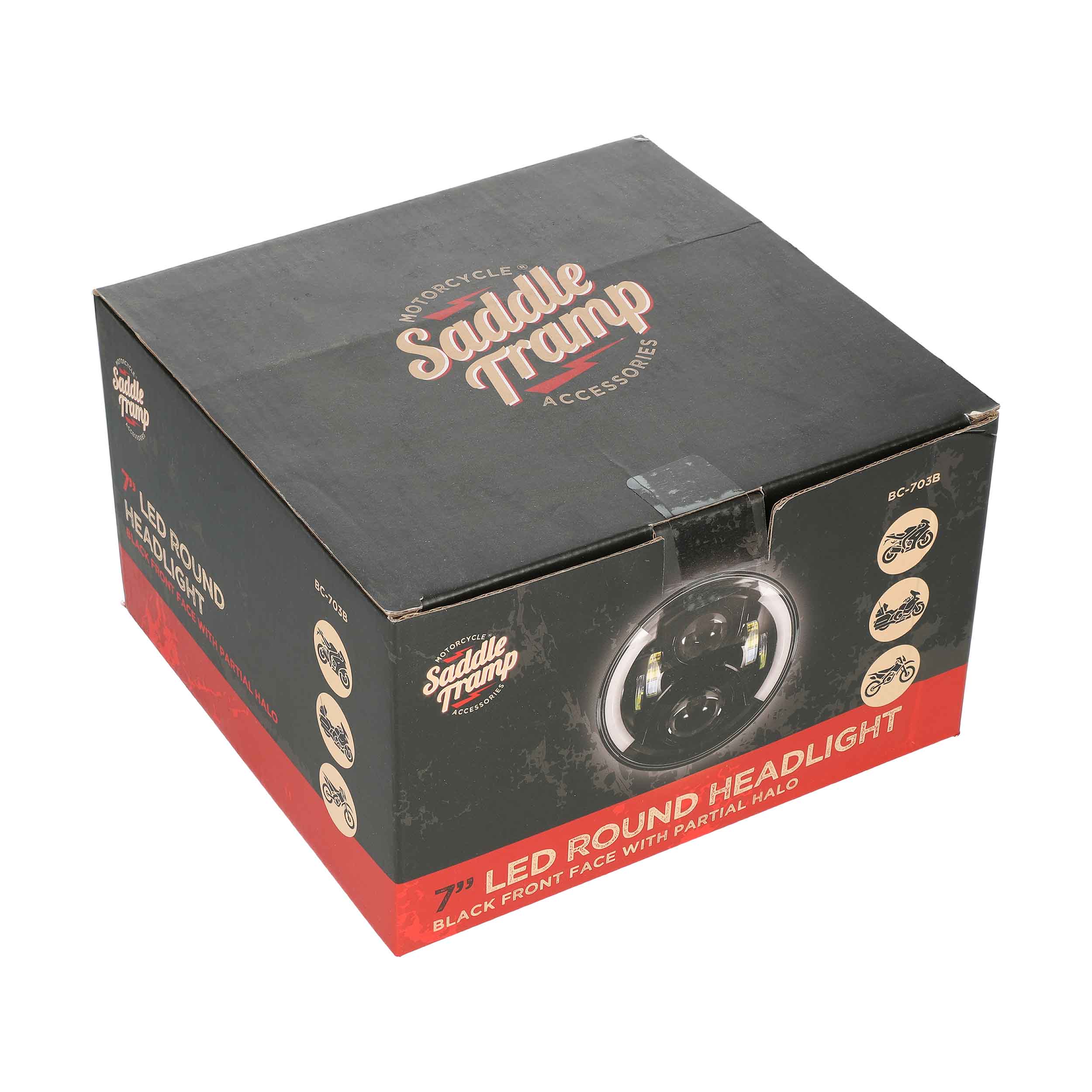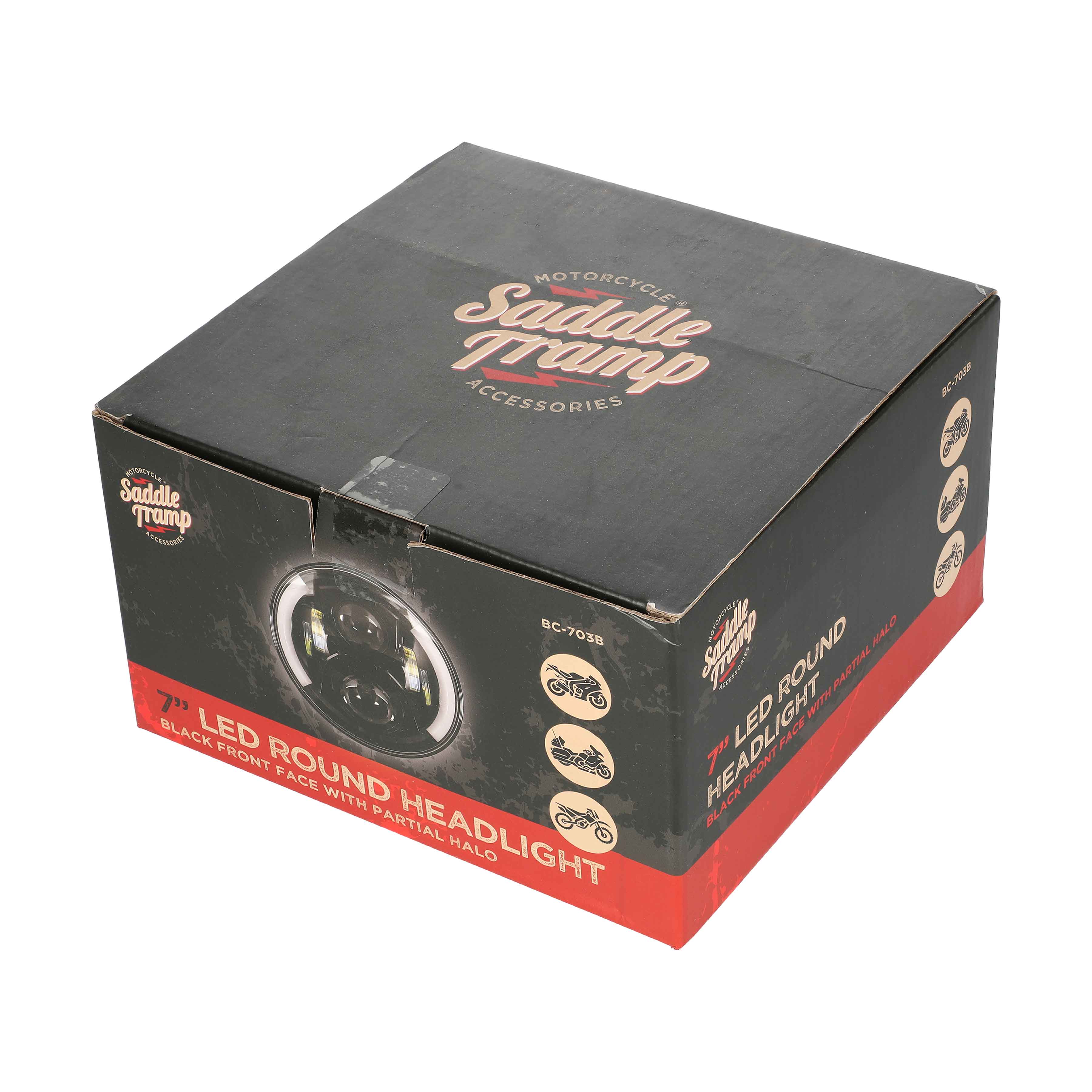 Round Motorcycle Headlights with Black Face and Partial Halo