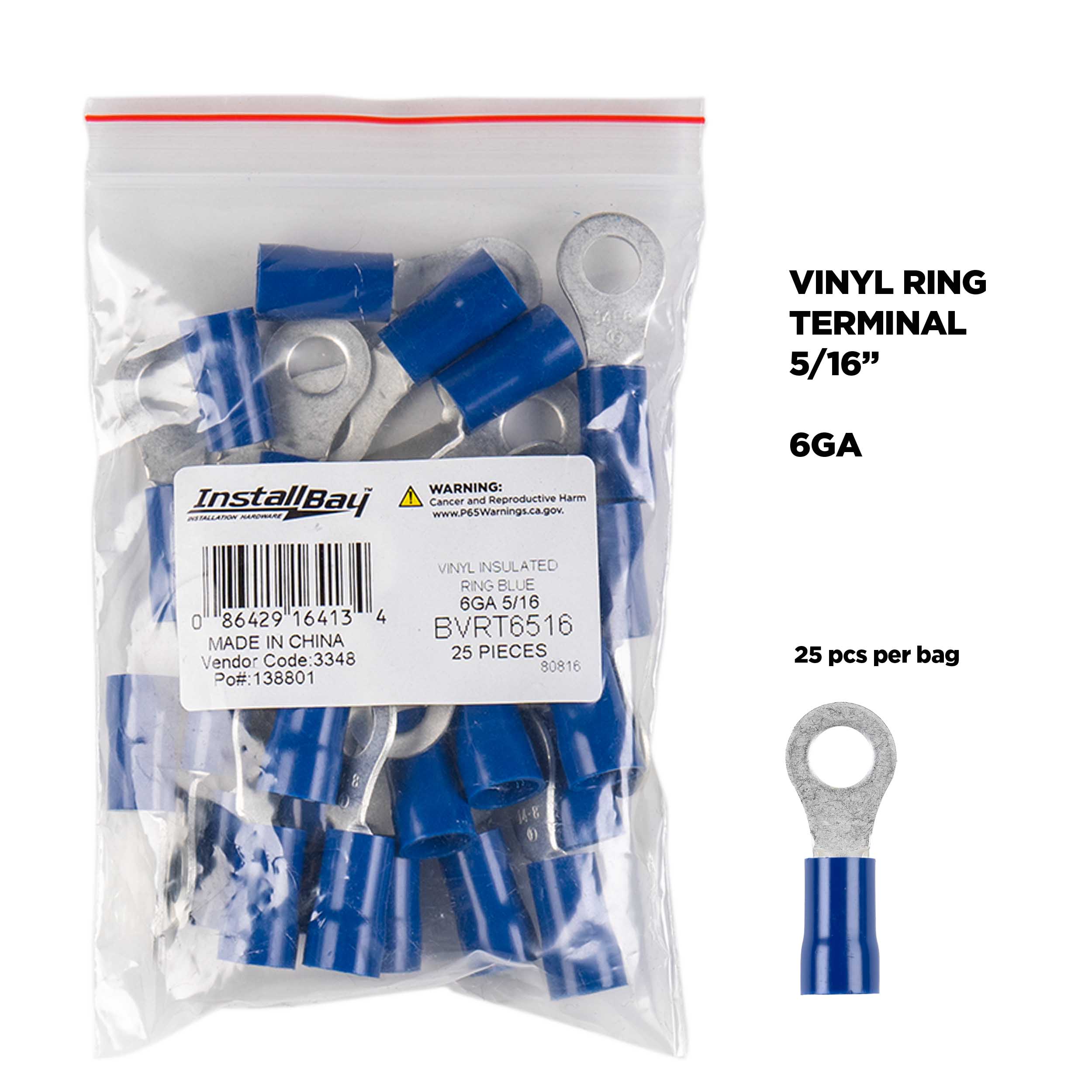 Blue Vinyl Ring Terminal 6 Gauge 5/16 inch - Package of 25